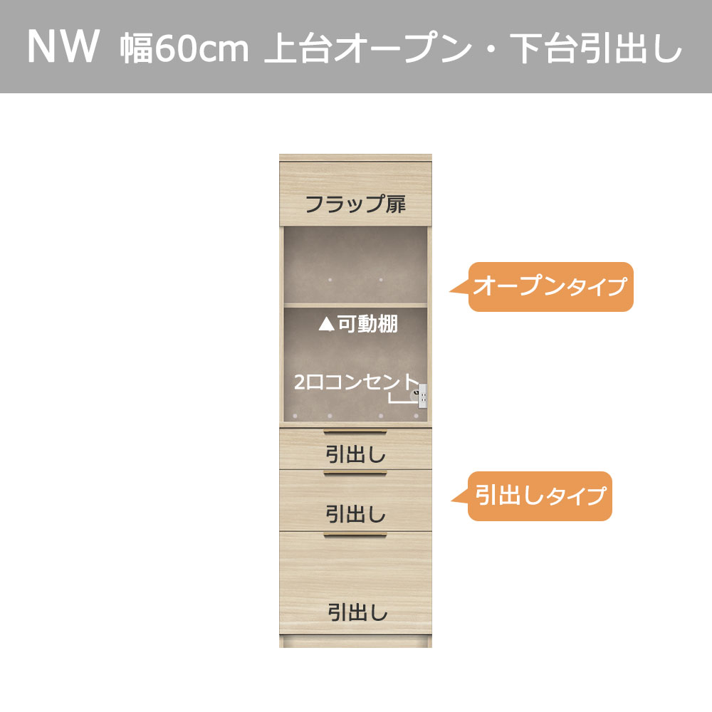 Pamouna(パモウナ)オープンボード「NW-S600R・600R」幅60cm 高さ193.1cm 奥行2サイズ(44.5cm・50cm)上台オープン・下台引出しタイプ 全4色