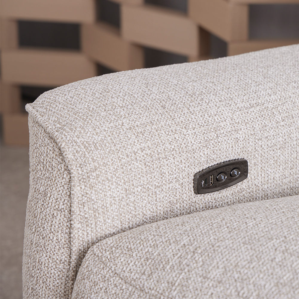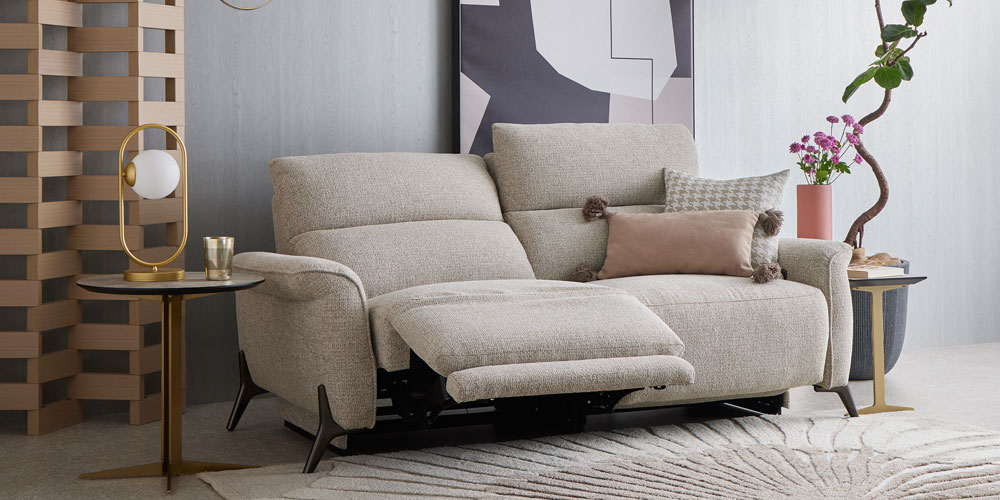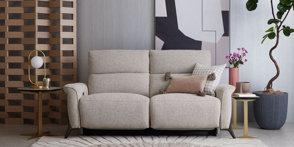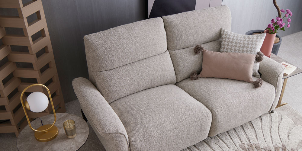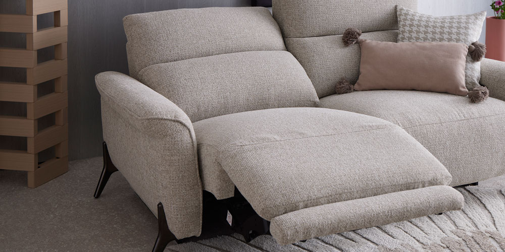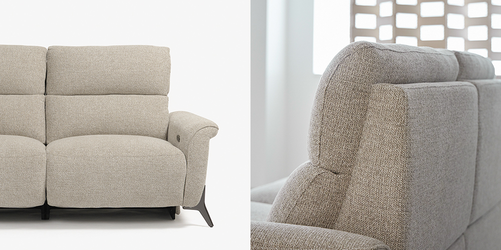 エレガントなフォルムの布張り電動リクライニングソファ「アマータ」