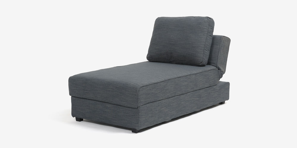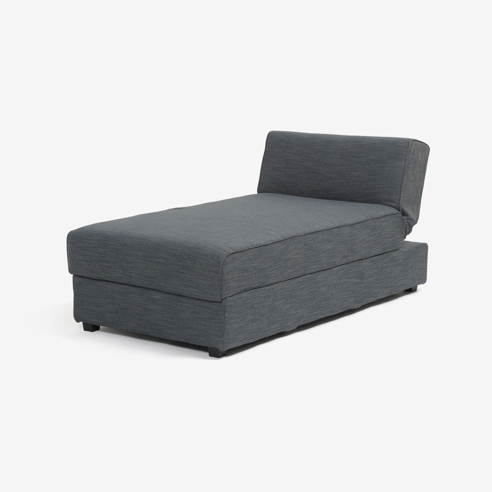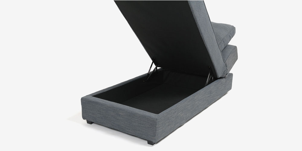 お部屋に合わせて自由に組み合わせができる「パズル」シリーズのアームレスカウチソファ。背もたれを倒してソファベッドにすることができます。座面の下にある大容量の収納スペースも魅力です。