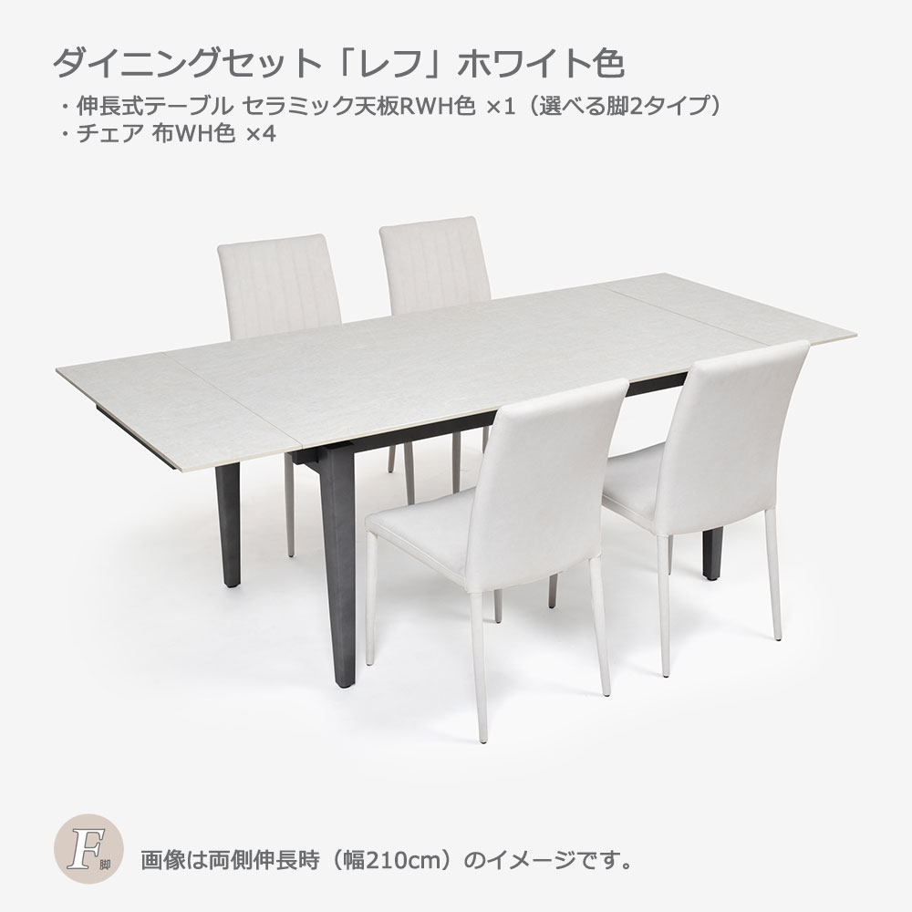 ダイニングセット「レフ」ホワイト色 伸長式セラミックテーブル天板RWH色(選べる脚2タイプ)+チェア布WH色4脚