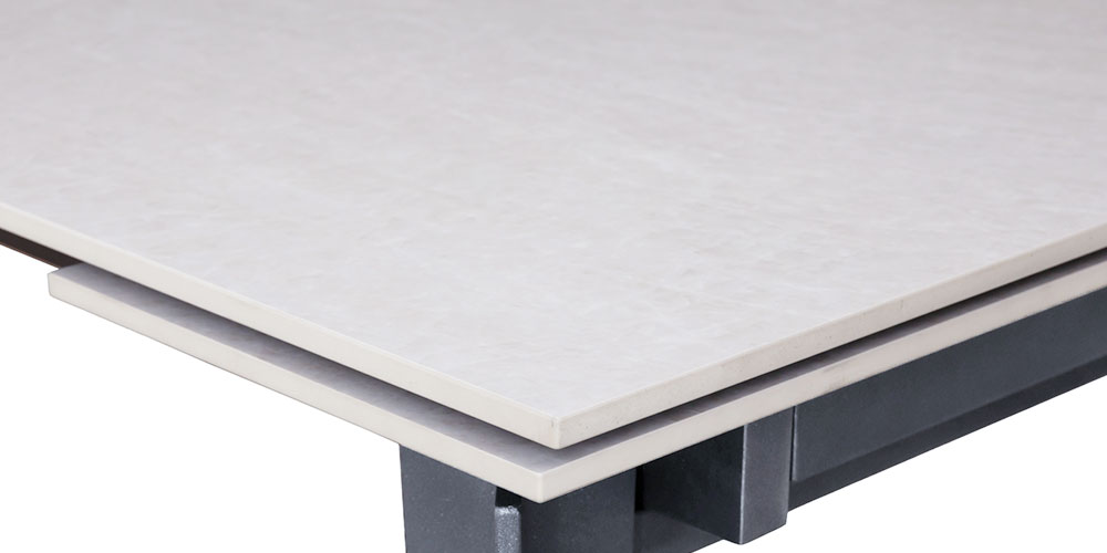 裏側にバックコーティングを施して強度を高めた12mm厚のセラミック天板を使用することで、伸長式でありながらも天板部分がシャープですっきりとした仕上がりです。