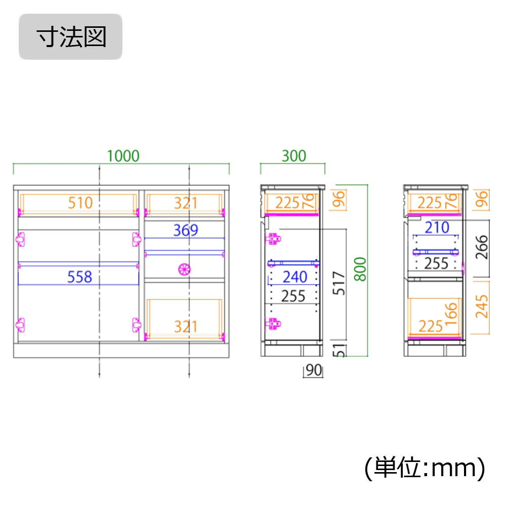 前面・天板:オーク無垢材、強化紙シート化粧繊維板、メラミン化粧板(前面のみ)