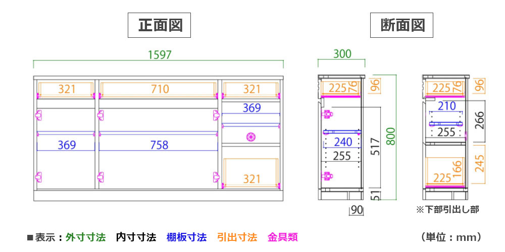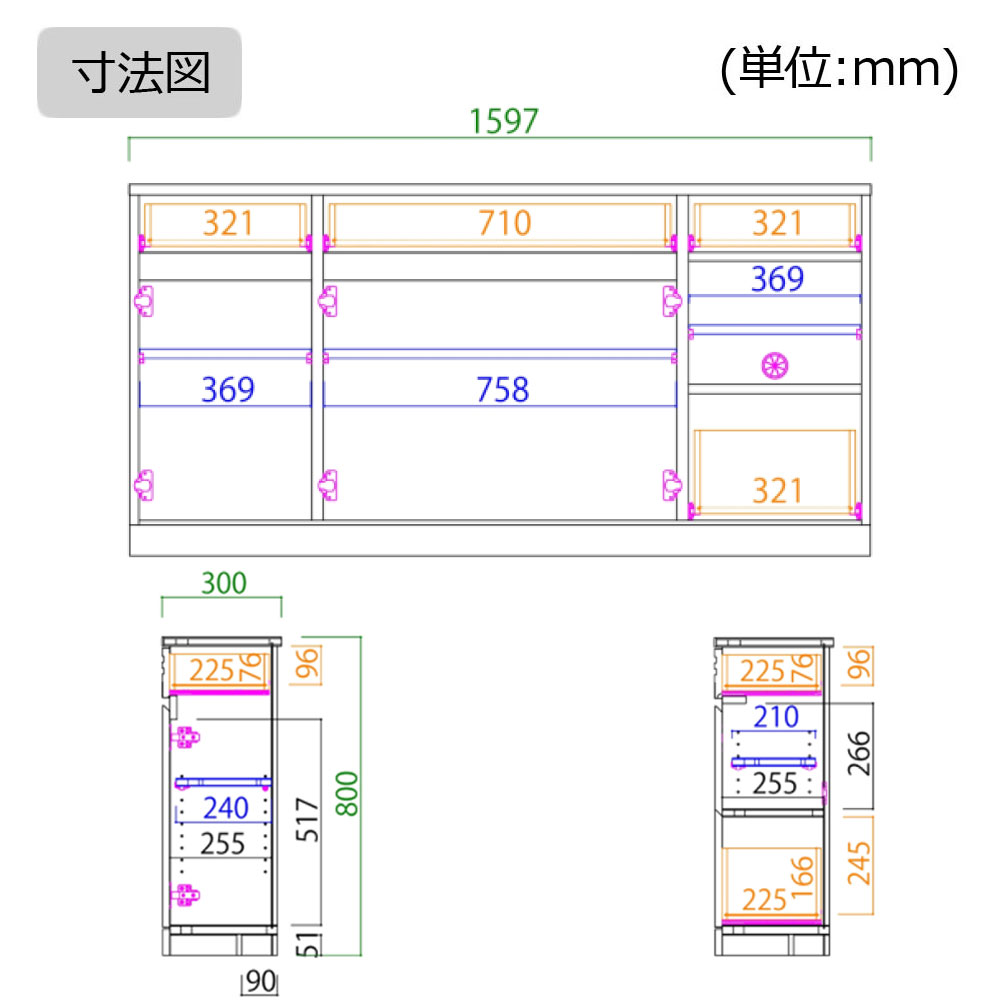 前面・天板:オーク無垢材、強化紙シート化粧繊維板、メラミン化粧板(前面のみ)
