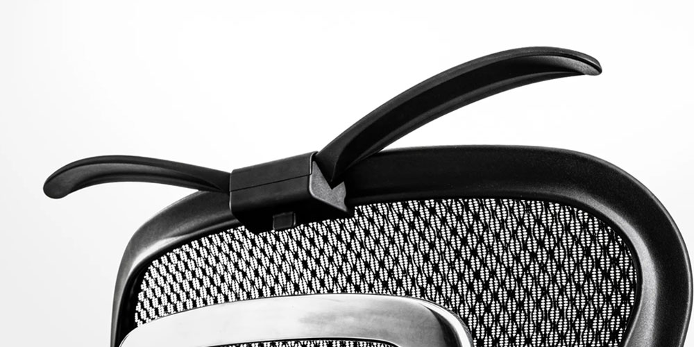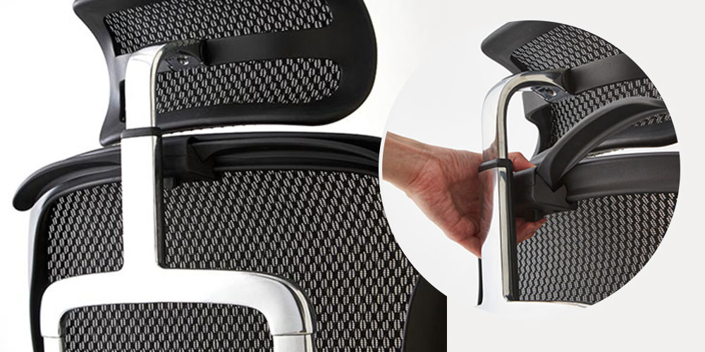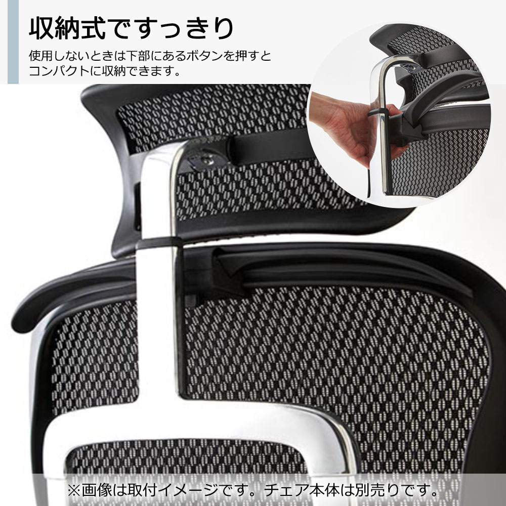 使用しない時は下部にあるボタンを押すと、背もたれのフレームラインに沿うようにコンパクトに収納ができます。※画像はイメージです。