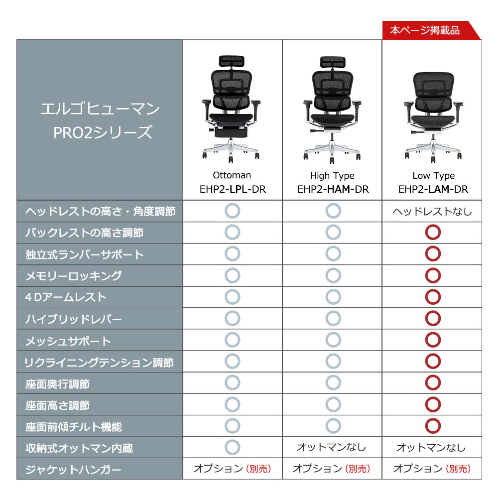 Ergohuman(エルゴヒューマン)「エルゴヒューマンPRO2 Low EHP2-LAM-DR」フレーム全2色 張地全5色