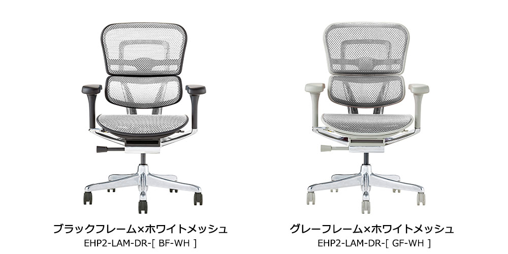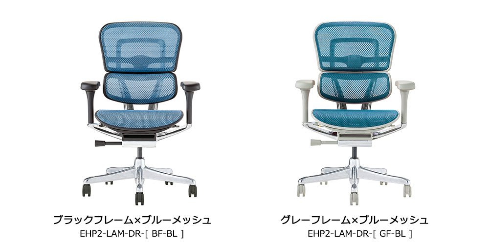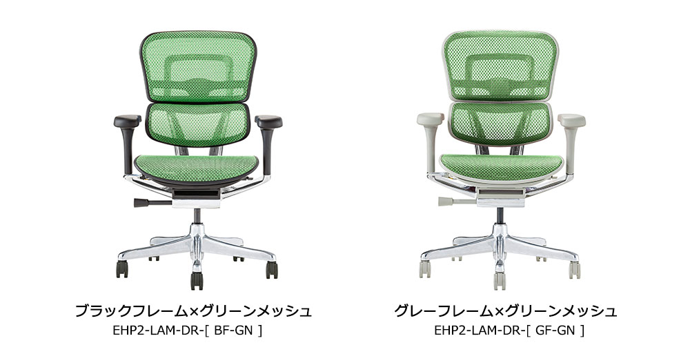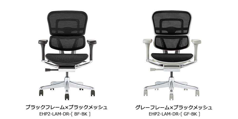 フレームはブラックとグレーの全2色。それぞれメッシュ張地を全5色からお選びいただけます。