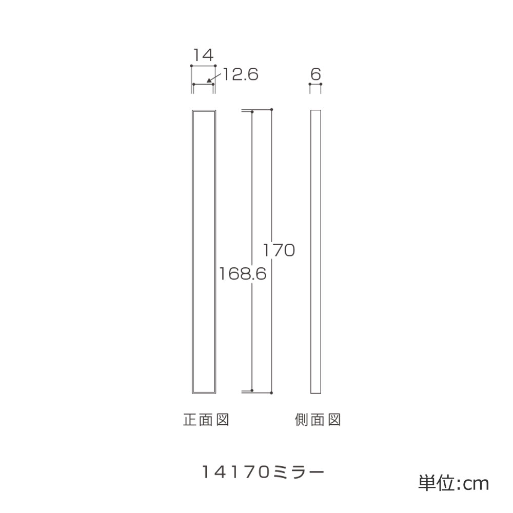ボックスミラー「14170ミラー」幅14cm 高さ170cm 全2色