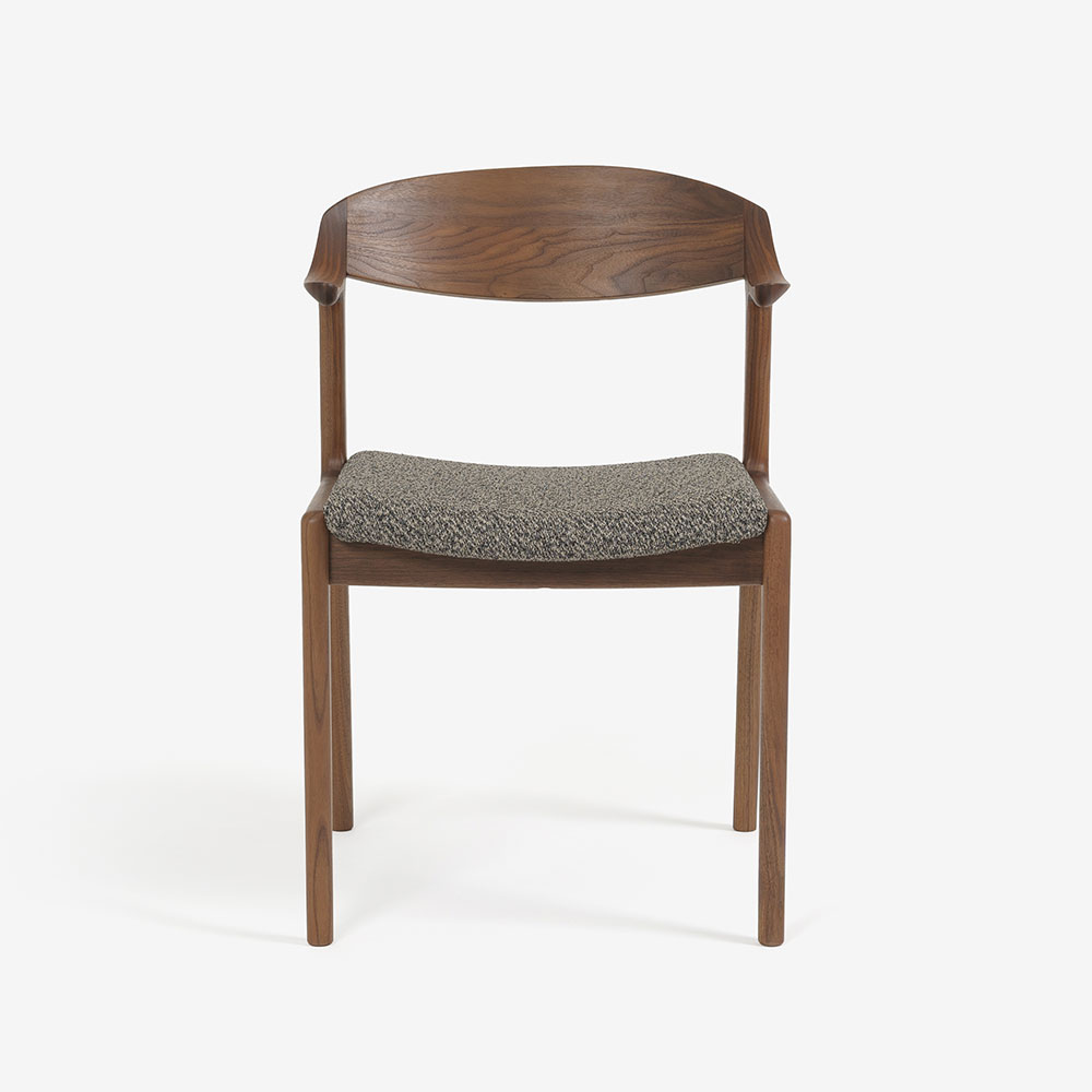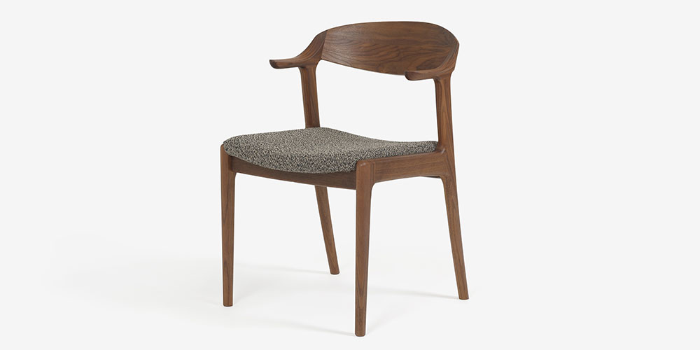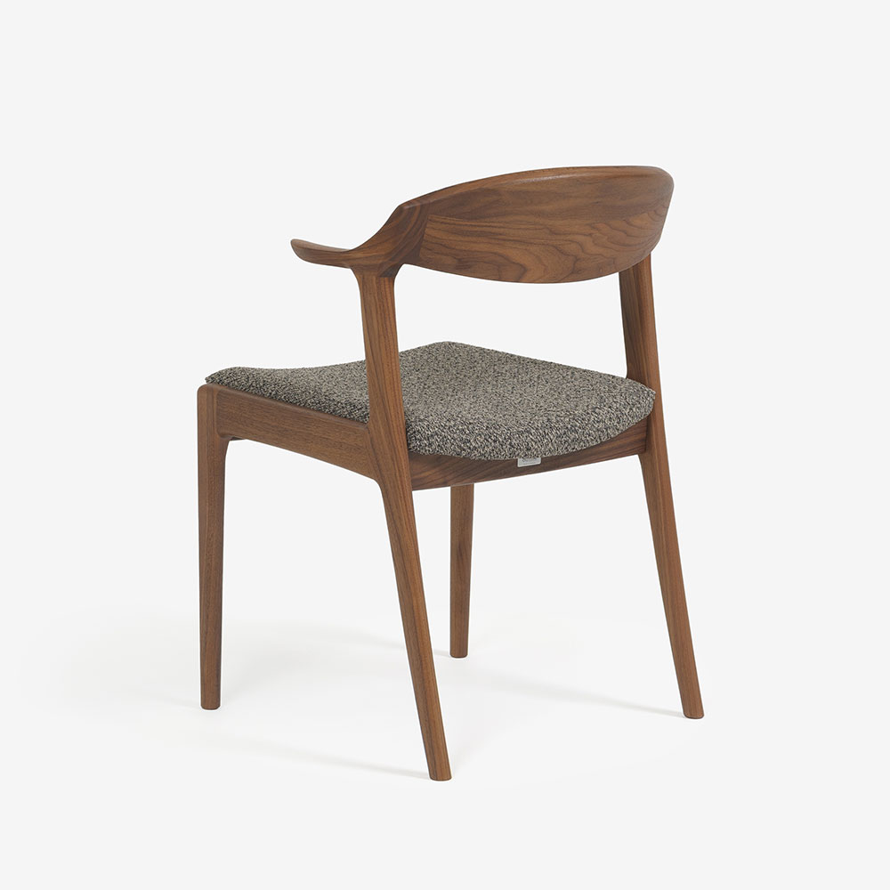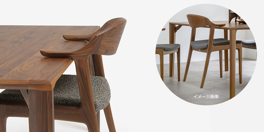 ウォールナット無垢材を使用しており自然な木の風合いをしっかりと感じることができるダイニングチェアです。ホールド感のある背もたれと座り心地、そして機能性を兼ね備えた、優れたチェアとなっています。※天然木を使用しているため、1点ごとに木目や色味は異なります。