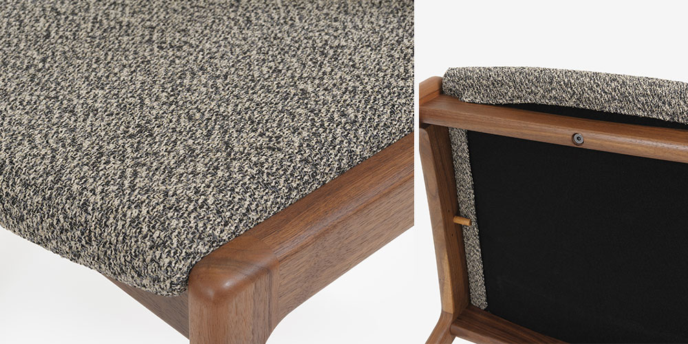 流れるような形状にこだわったアーム部分と、大きくラウンドした背板が身体に美しくフィットします。