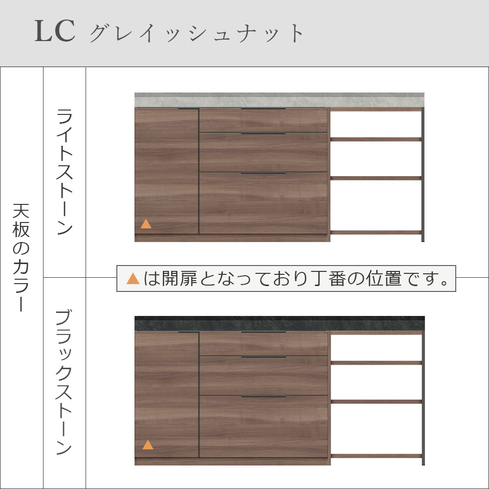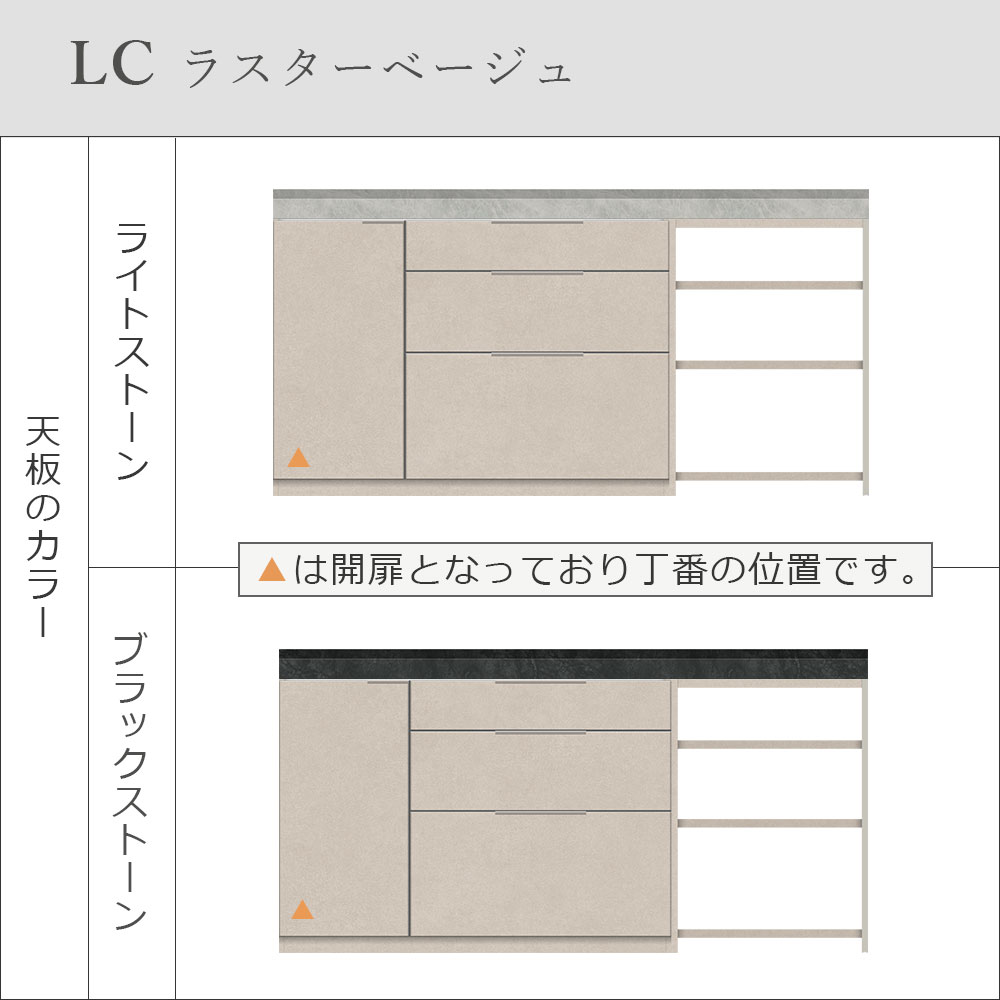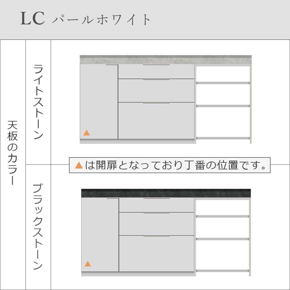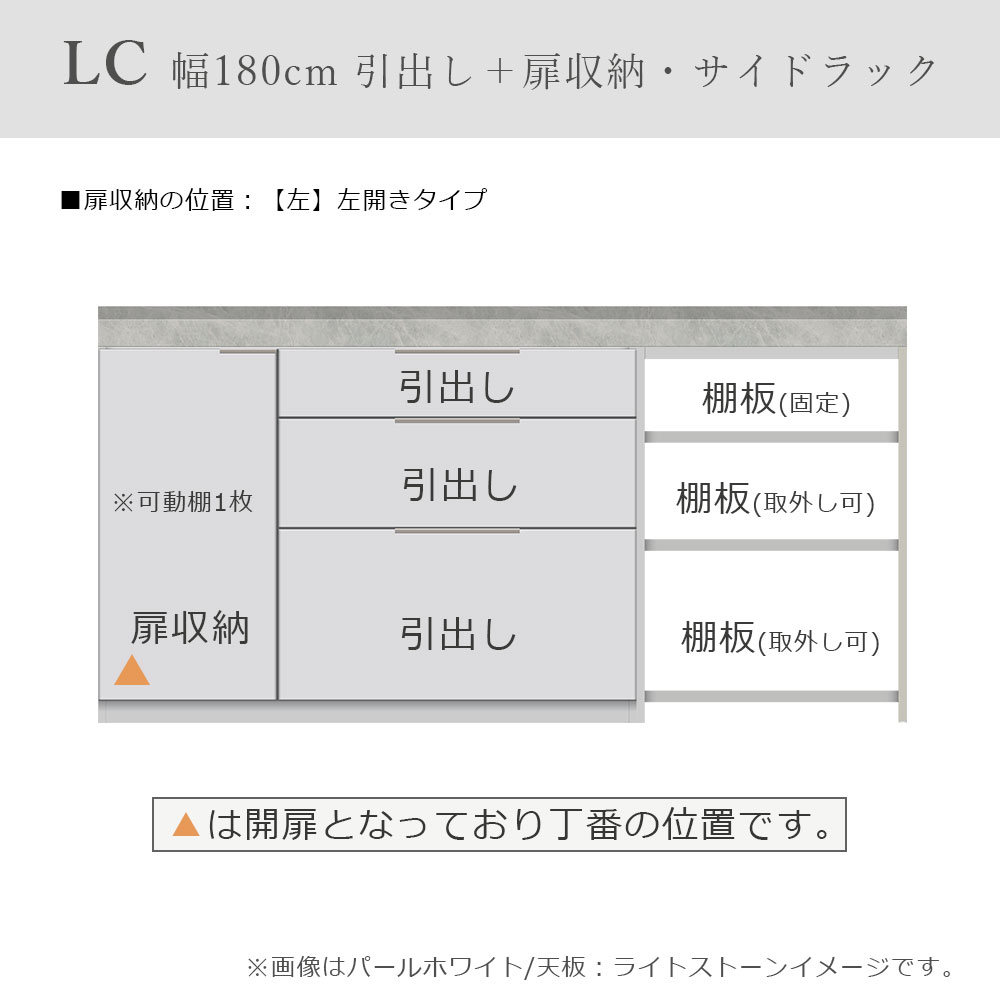 Pamouna(パモウナ)ユニットカウンター「LC-S1201・S605・180T」幅180cm 奥行46cm 高さ92.7cm 引出し+扉収納(扉:向かって左) サイドラック 下台全4色 天板全2色