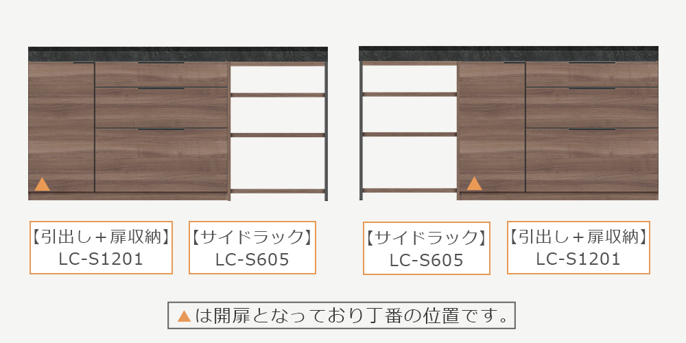 (引出し+扉収納[扉:向かって左])LC-S1201/(サイドラック)LC-S605/(天板)LC-180T