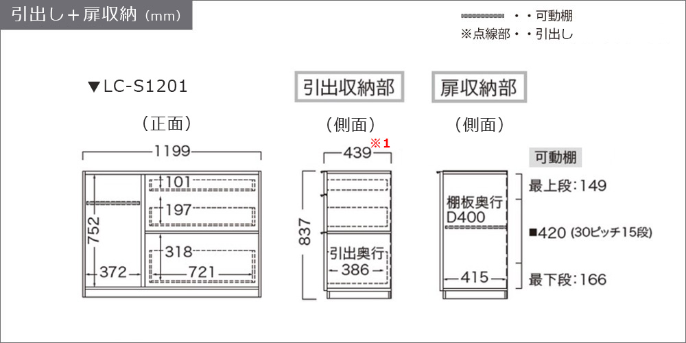 引出し+扉収納(LC-S1201)※扉:向かって左[左開き]