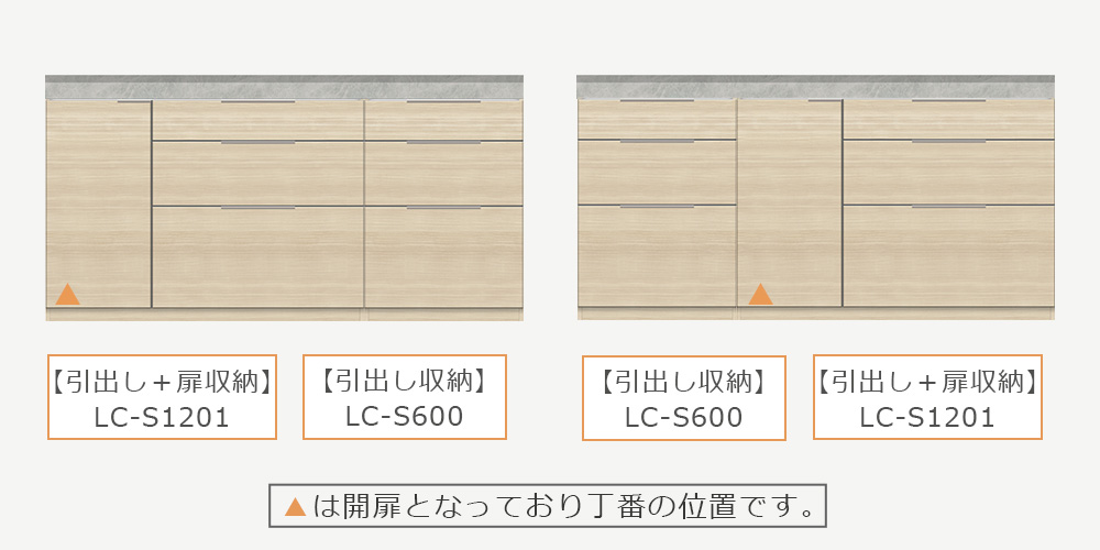 (引出し+扉収納[扉:向かって左])LC-S1201/(引出し収納)LC-S600/(天板)LC-180T