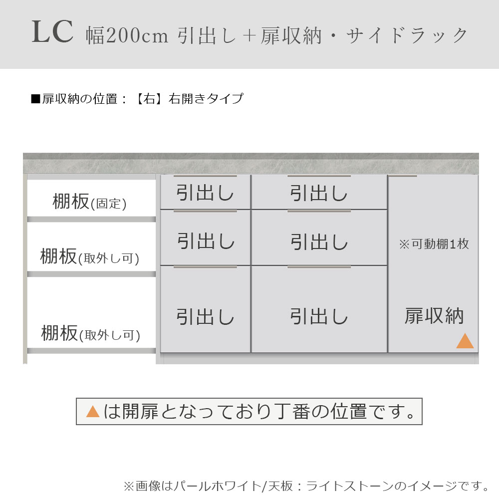 Pamouna(パモウナ)ユニットカウンター「LC-S1400・S605・200T」幅200cm 奥行46cm 高さ92.7cm 引出し+扉収納(扉:向かって右) サイドラック 下台全4色 天板全2色