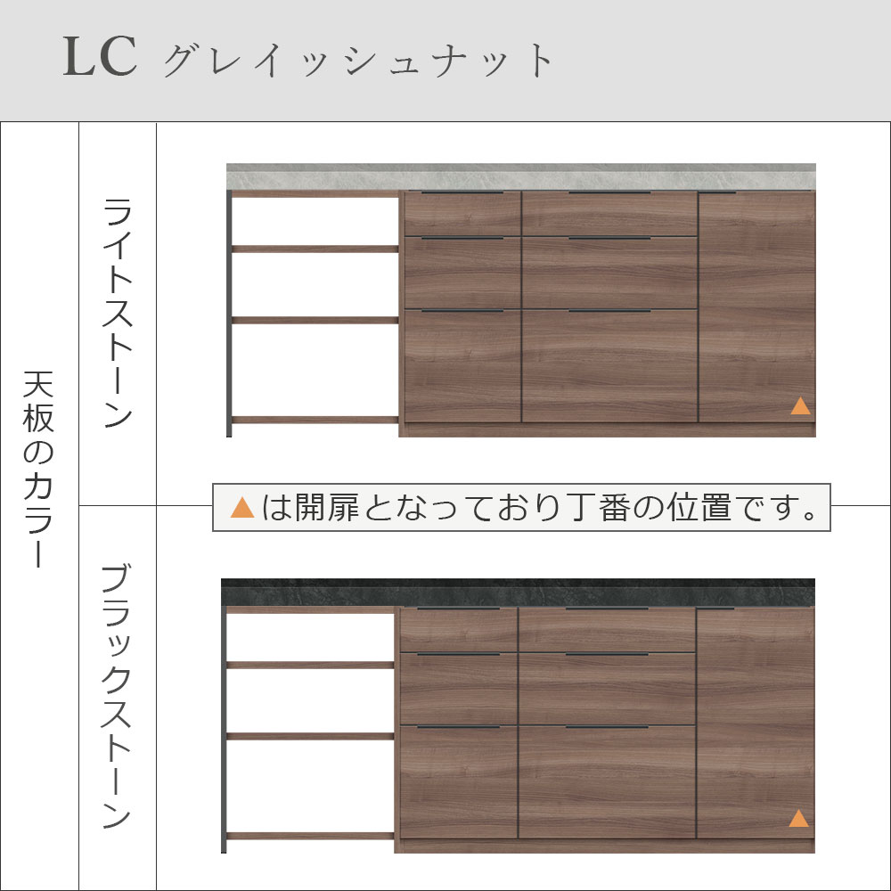 巾木やコード配線を避ける機能が付いた壁にぴったり設置ができるカウンター型キッチン収納です。実用性と美しさに加え、十分な収納力を備えています。※画像はLCシリーズのイメージです。