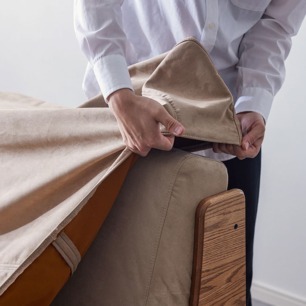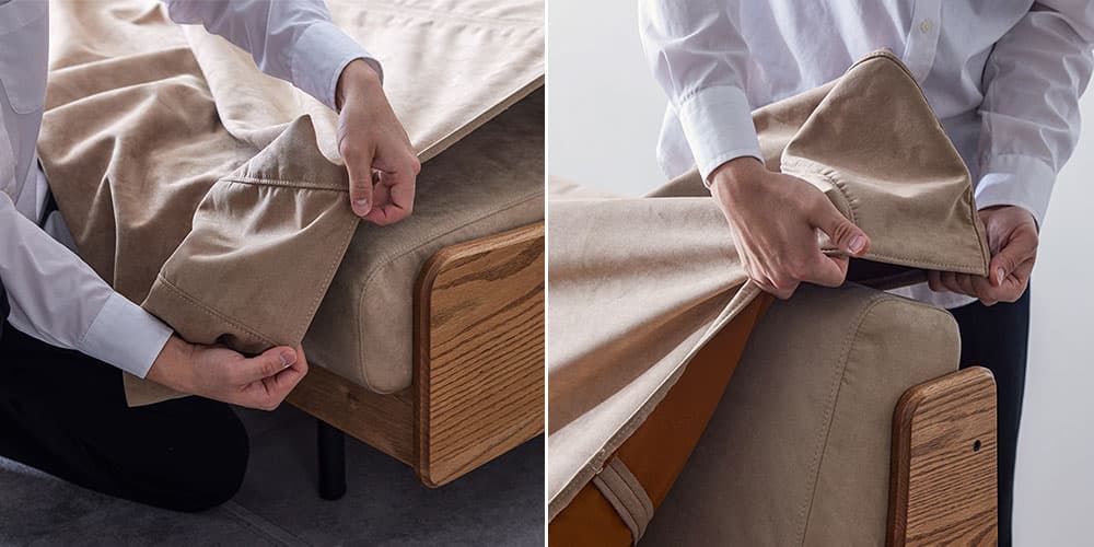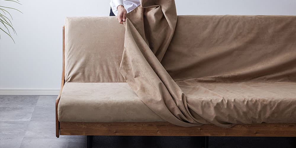 日々のお手入れを軽減してくれる被せるだけのソファベッド「フォース」専用カバーです。被せる部分にはゴムが入っているので取付け・取外しが簡単です。ソファベッド本体が汚れるのを防ぎ、外してこまめにお手入れすることができます。
