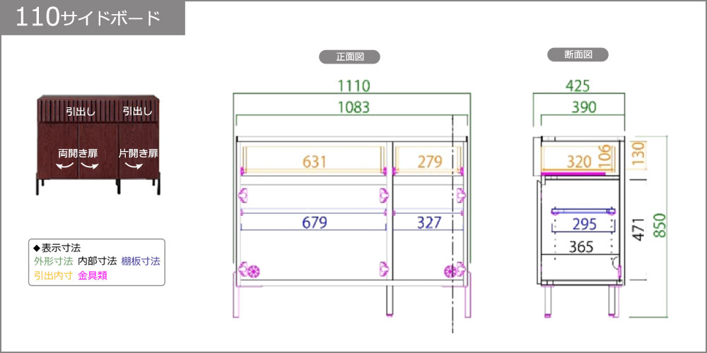 | 110サイドボード | 幅1110x奥行425x高さ850 |