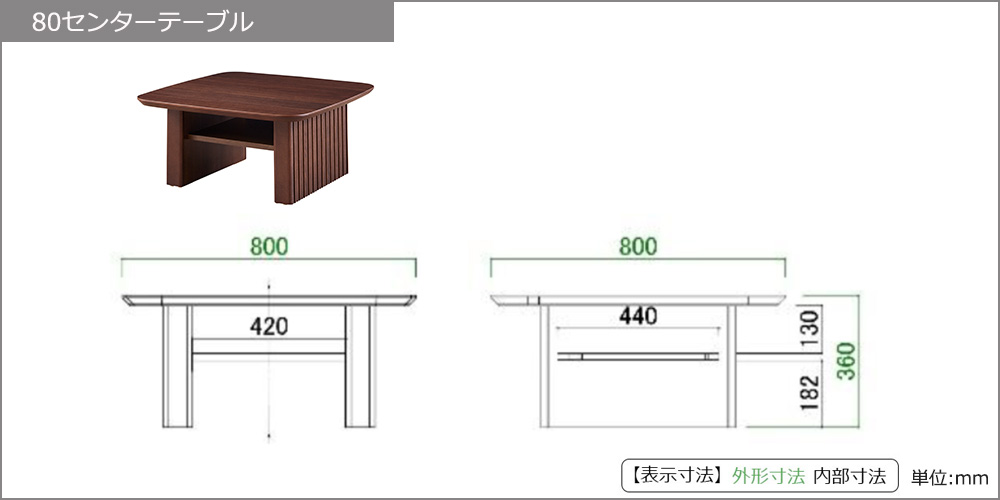| 80センターテーブル | 幅800x奥行800x高さ360 |