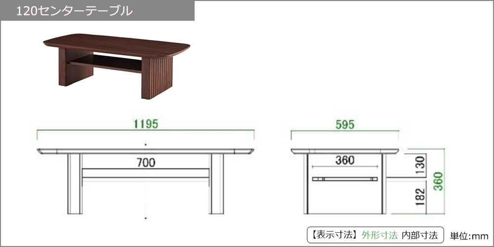 | 120センターテーブル | 幅1195x奥行595x高さ360 |