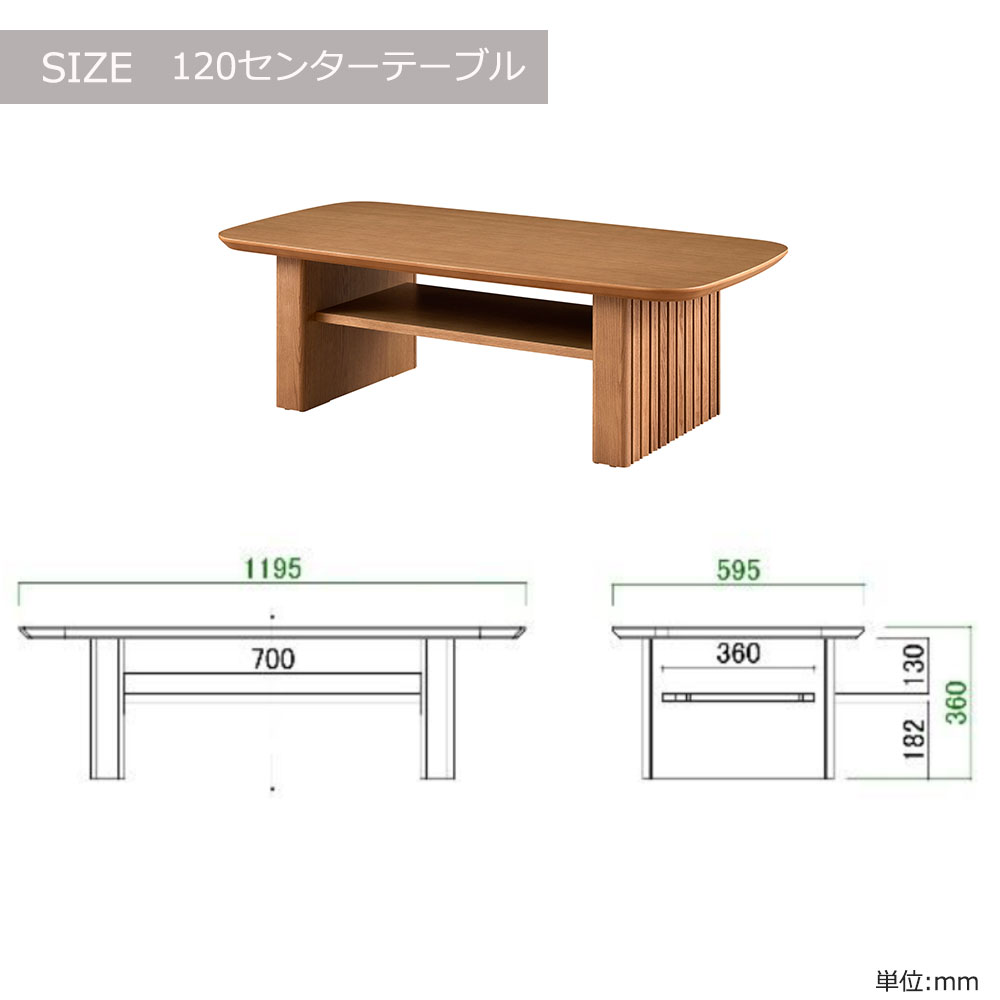 | 120センターテーブル | 幅1195x奥行595x高さ360 |