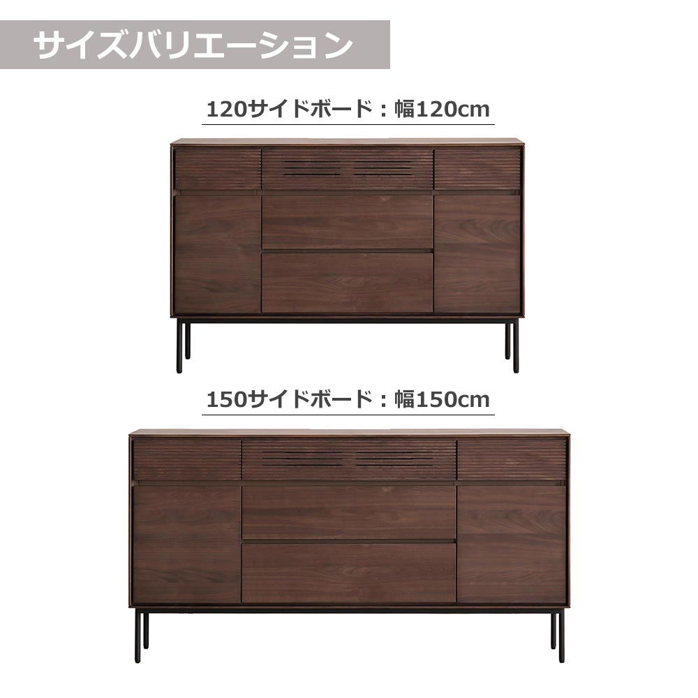 幅120cmの「120サイドボード」と幅150cmの「150サイドボード」の2サイズよりお選びいただけます。