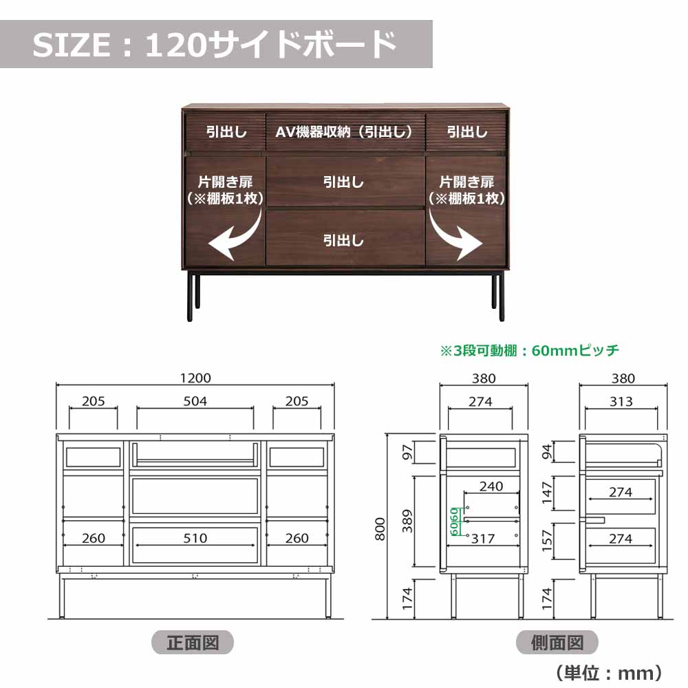 | 120サイドボード | 幅1200x奥行380x高さ800 |