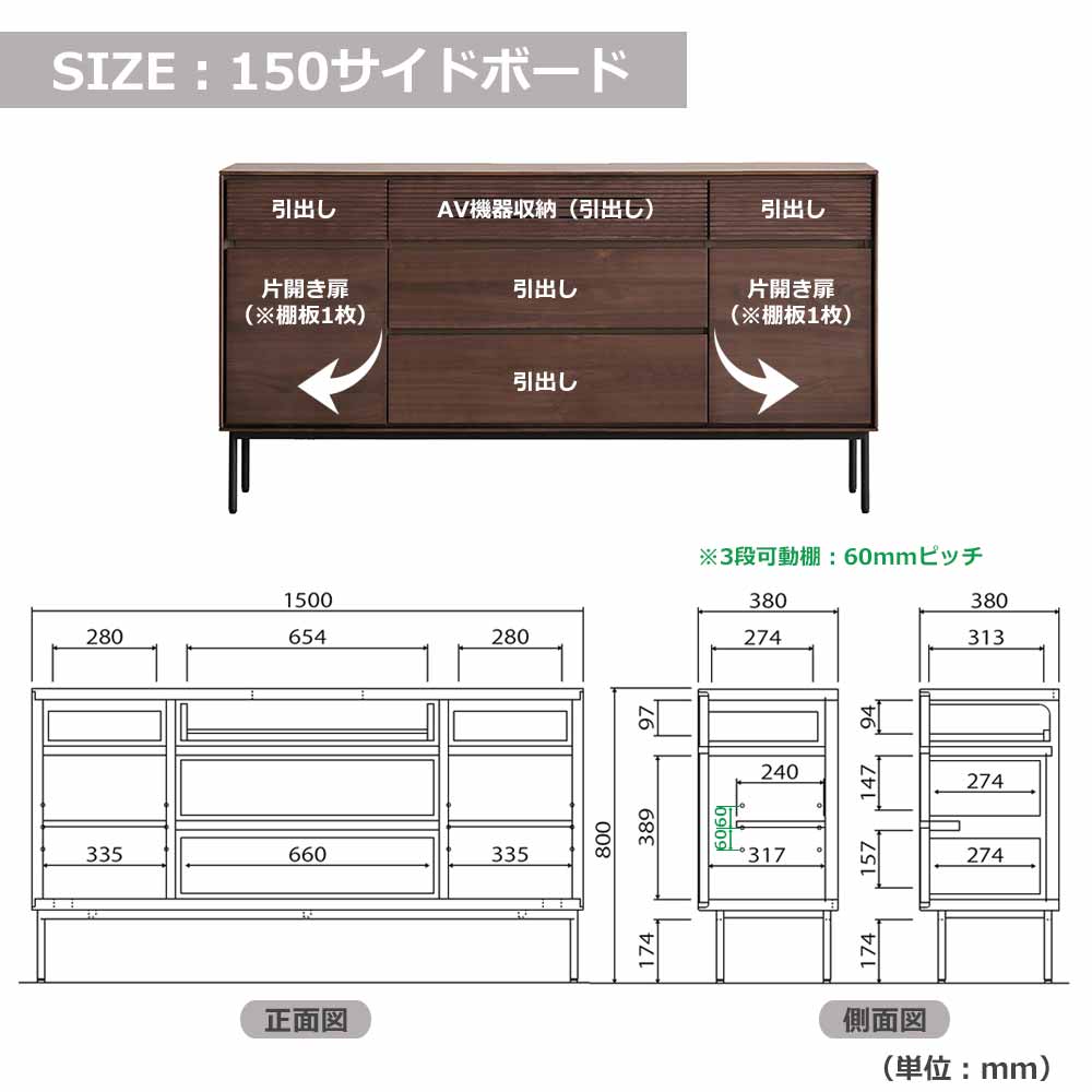 | 150サイドボード | 幅1500x奥行380x高さ800 |