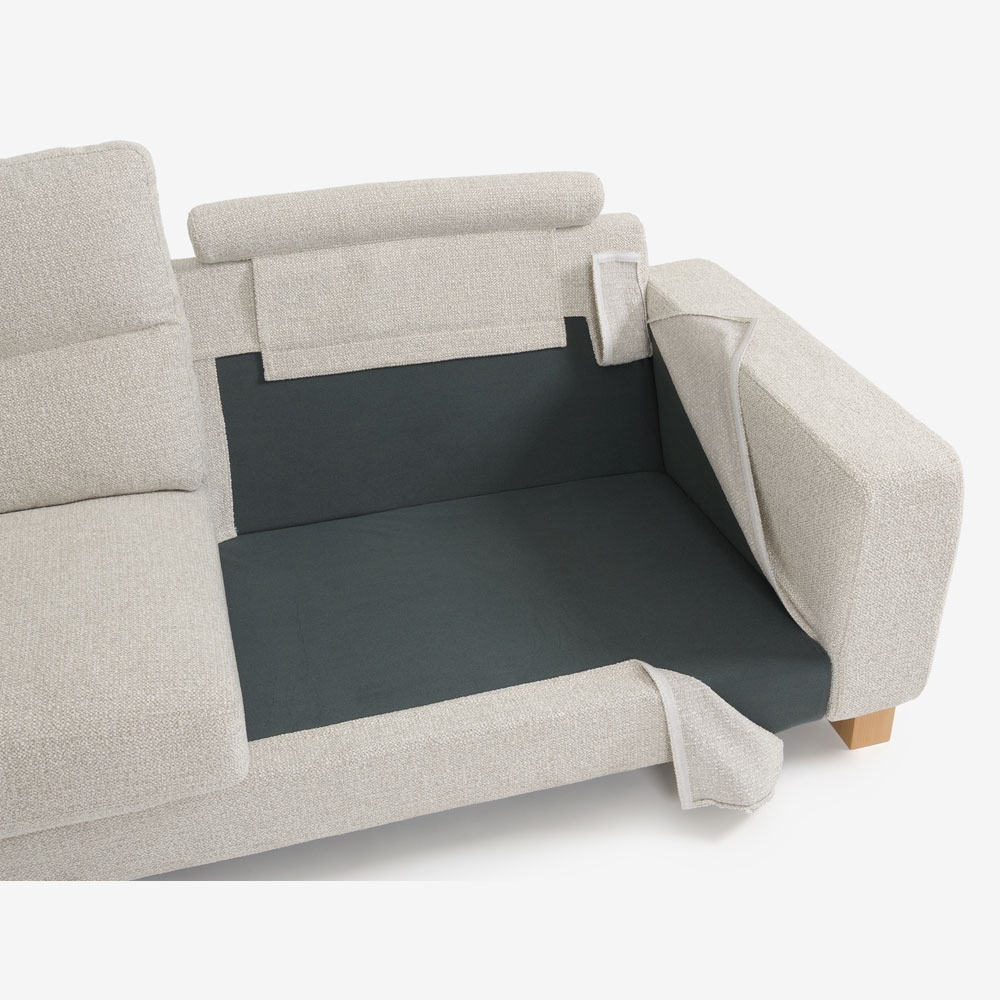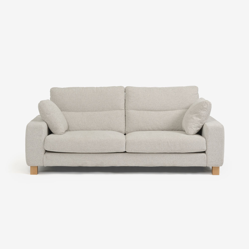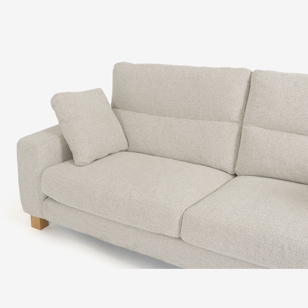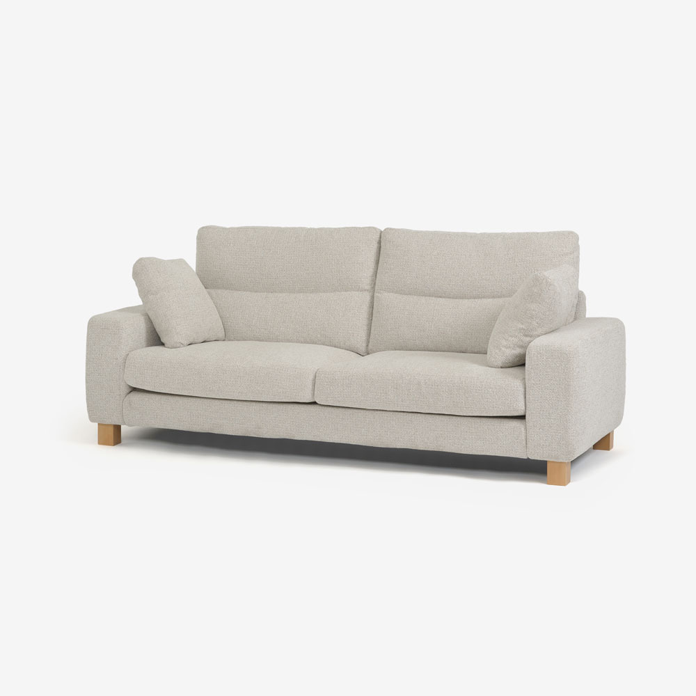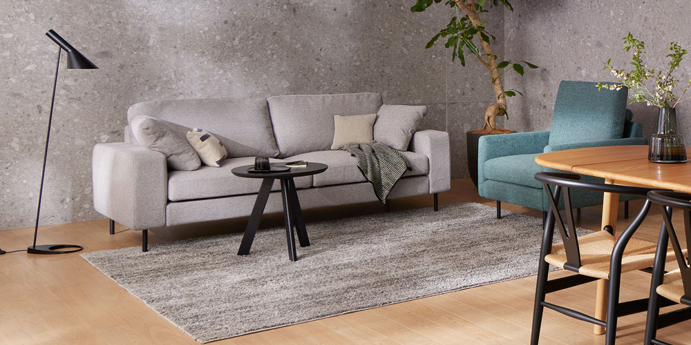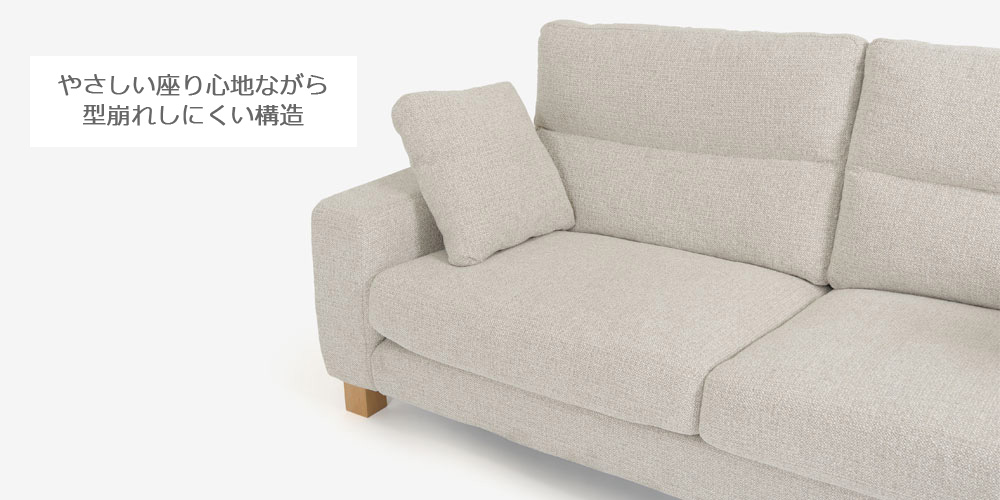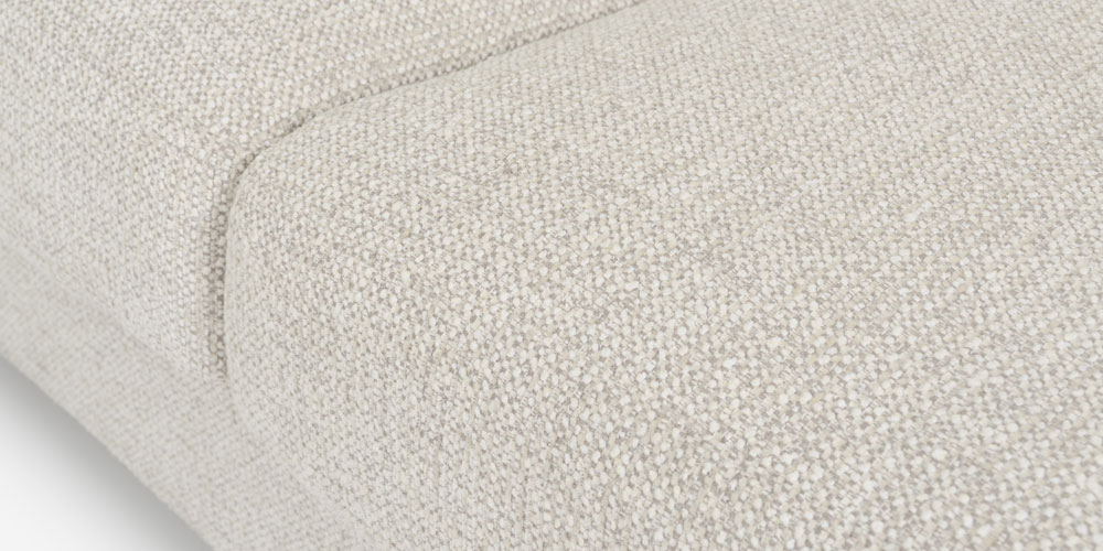 ざっくりとした織り目で素材本来の表情を感じさせる生地。ナチュラルな温もりと、素朴な風合いが、リラックスできる空間を創り出します。脚部やクッションの組合わせ次第で、カジュアルだけでなくモダンスタイルのインテリアにも馴染みます。