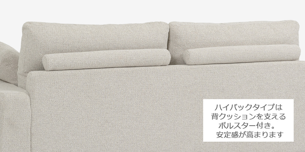 ハイバックタイプには背クッションを支えるボルスターが付き、 安定感を高めています。