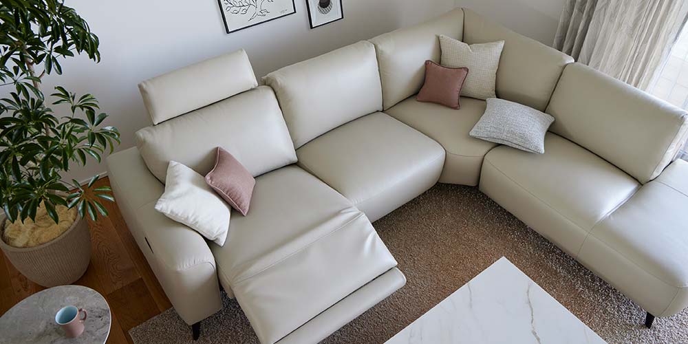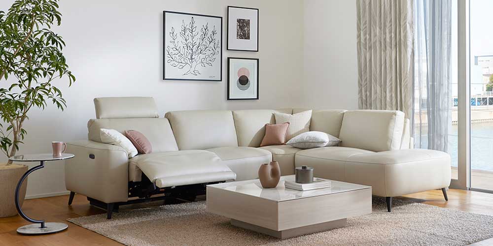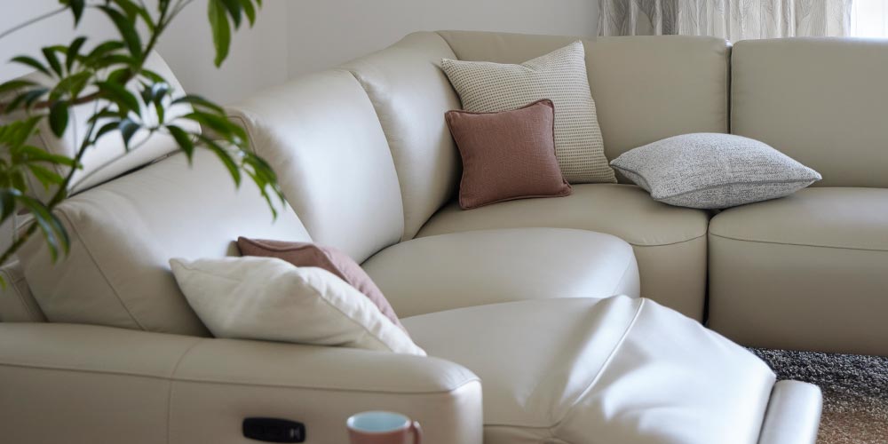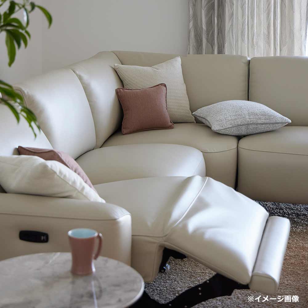 洗練されたデザインに快適なリクライニング機能を兼ね備えた、電動リクライニングコーナーソファ。座面や背もたれには継ぎ目のない一枚革を贅沢に使用し、シンプルながらも優雅さを感じるデザインが魅力的です。
