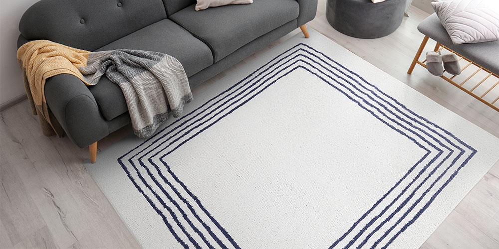 清涼感のある白と爽やかなネイビーが調和し海水と浜辺をイメージしたデザインのウォッシャブル涼感ラグです。