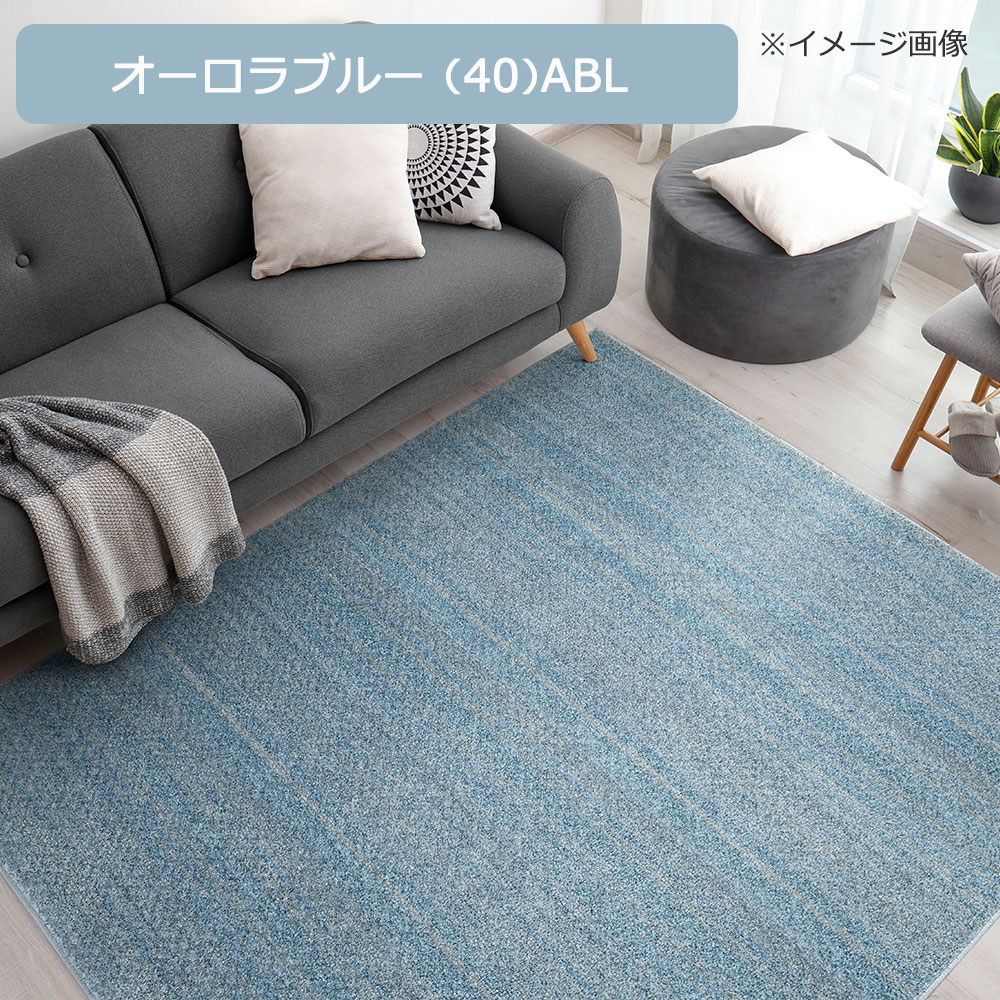 海と空が溶け合う地平線に映る、淡く輝く色の色彩を光沢糸で豊かに表現したウォッシャブル涼感ラグです。