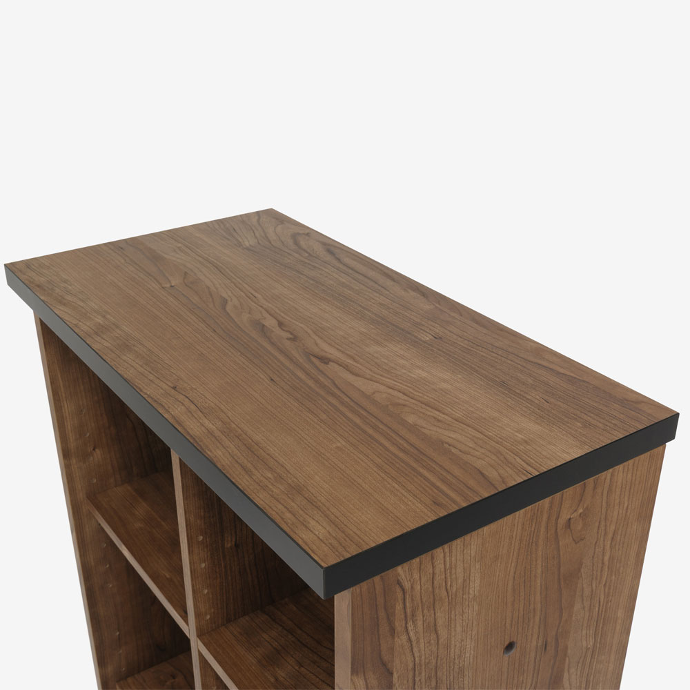 天板はダークブラウン色とブラック色のツートンが落ち着いたシックな印象です。書棚部分の背板にはホワイト色を組み合わせています。