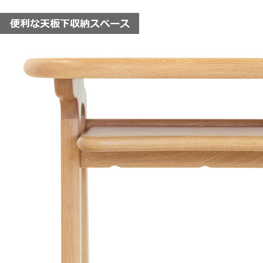 雑誌やリモコン、タブレット機器などを"ちょっと置きたい"に便利な収納スペースを天板下に設けています。
