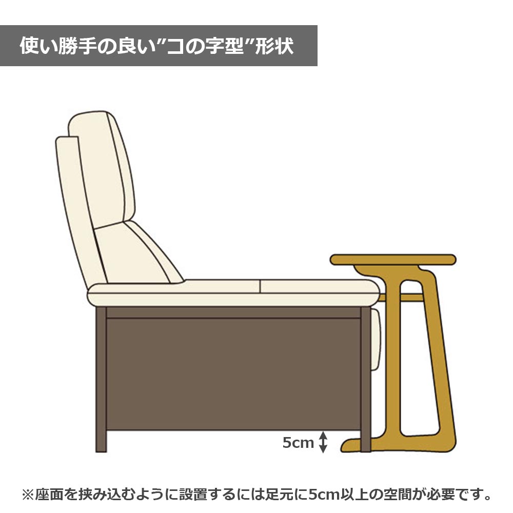 ソファとの組合わせを考えた「コの字型」のデザインは、座面を挟み込むように設置することが可能です。