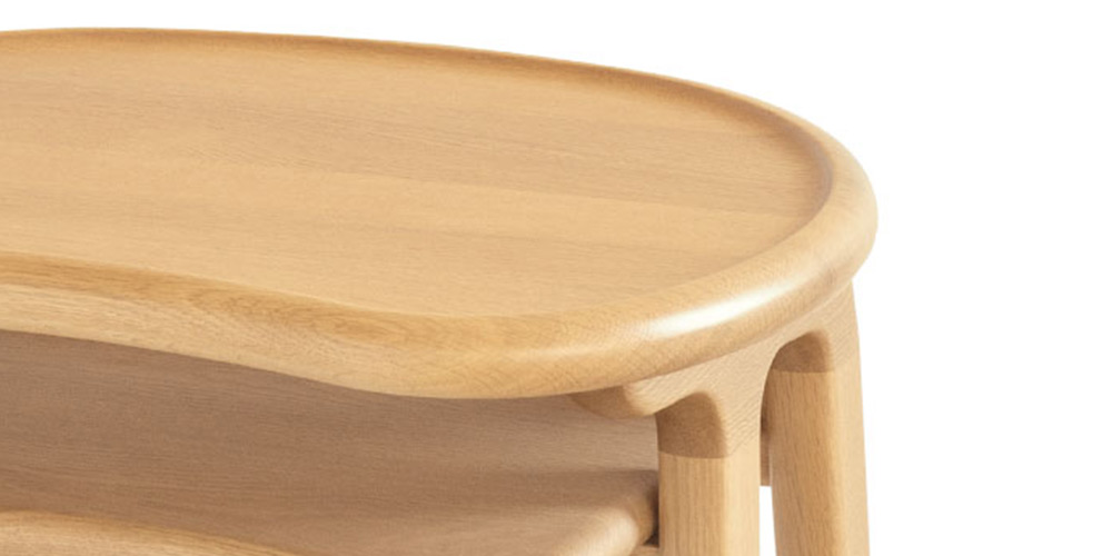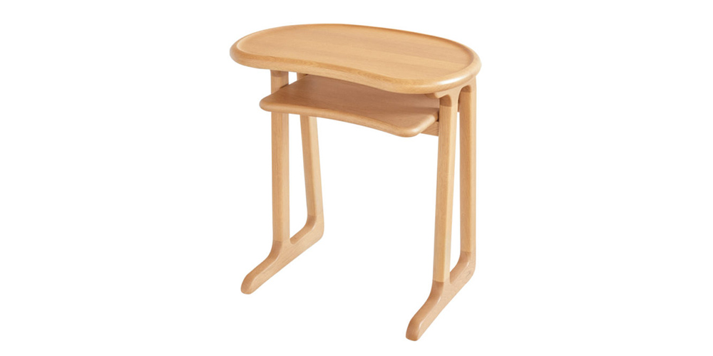 ビーンズ型のやさしいフォルムが特徴的な天板は、モノが落ちにくいよう縁を残して内側をほり込んだ「ほり込み形状」で丁寧に仕上げています。