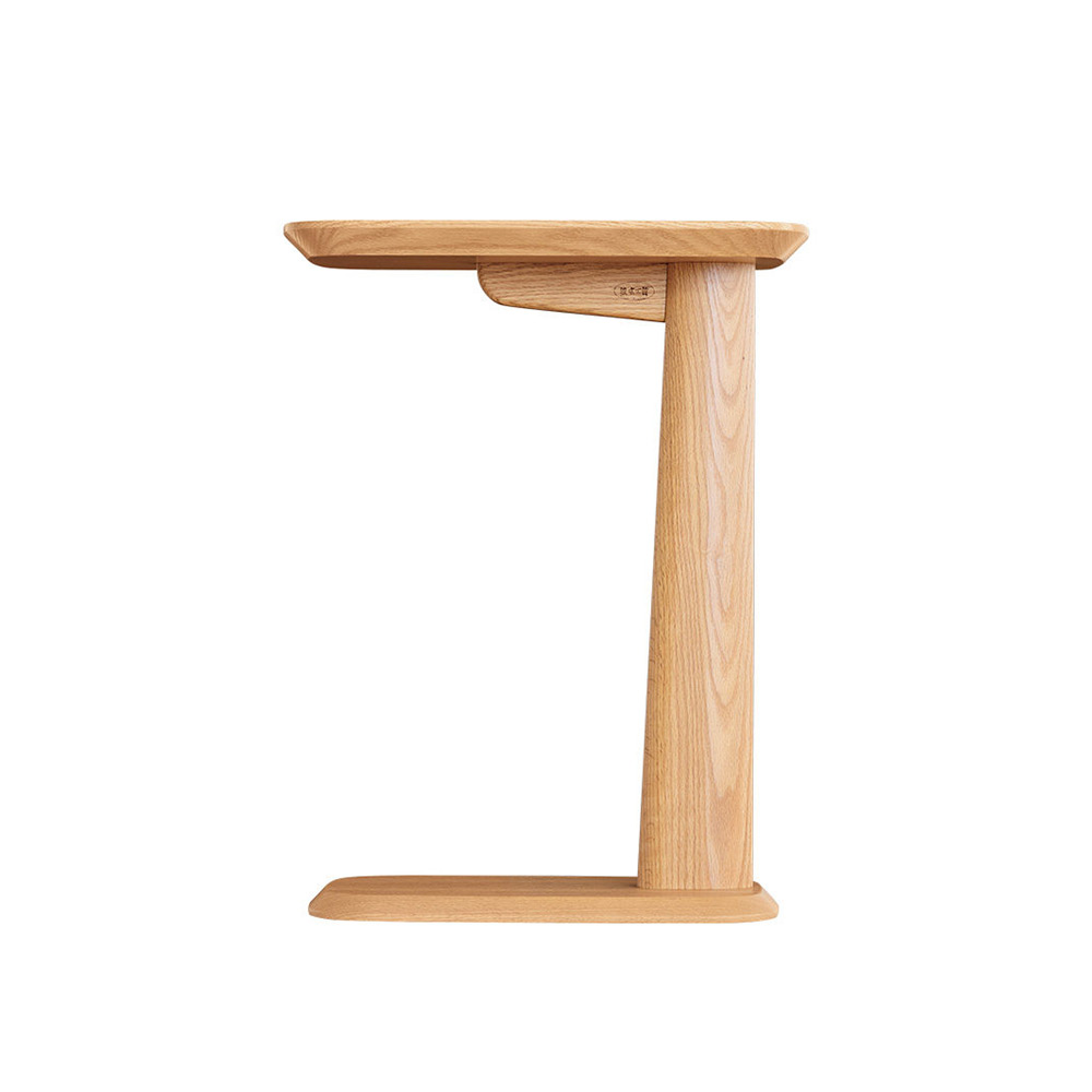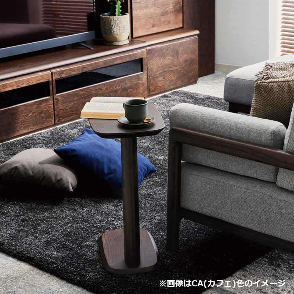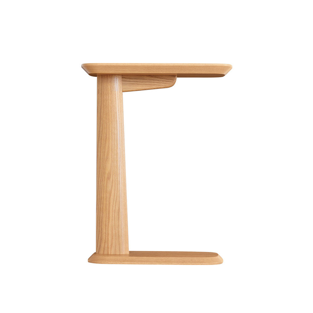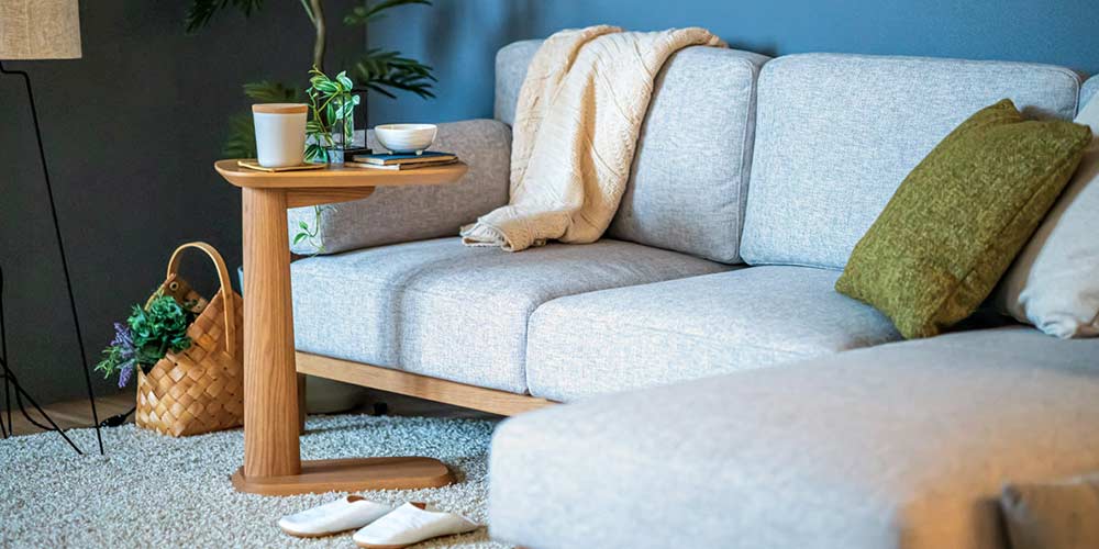 木の"素材感"を活かした無駄のないシンプルなデザインはどんなスタイルにもマッチして、ソファ周りを快適にしてくれます。「コの字型」のデザインは、座面を挟み込むように置くこともできるので、使い方の幅が広がります。
