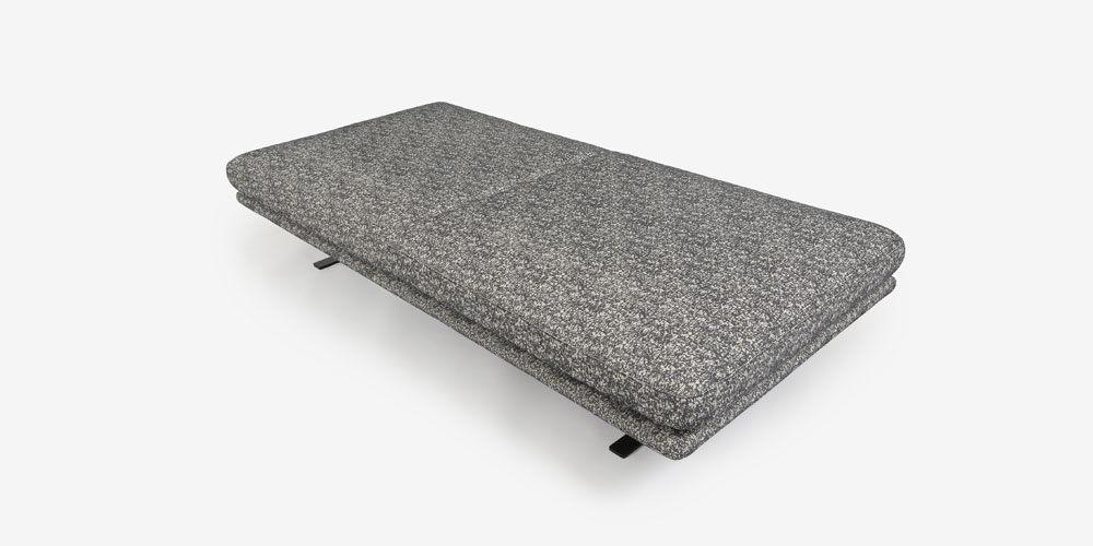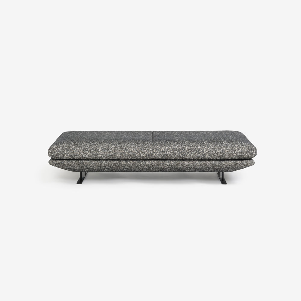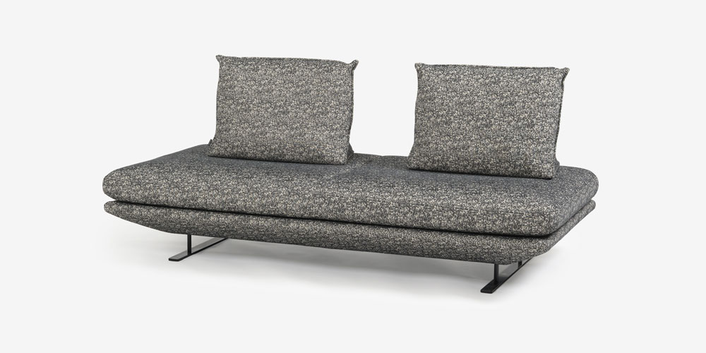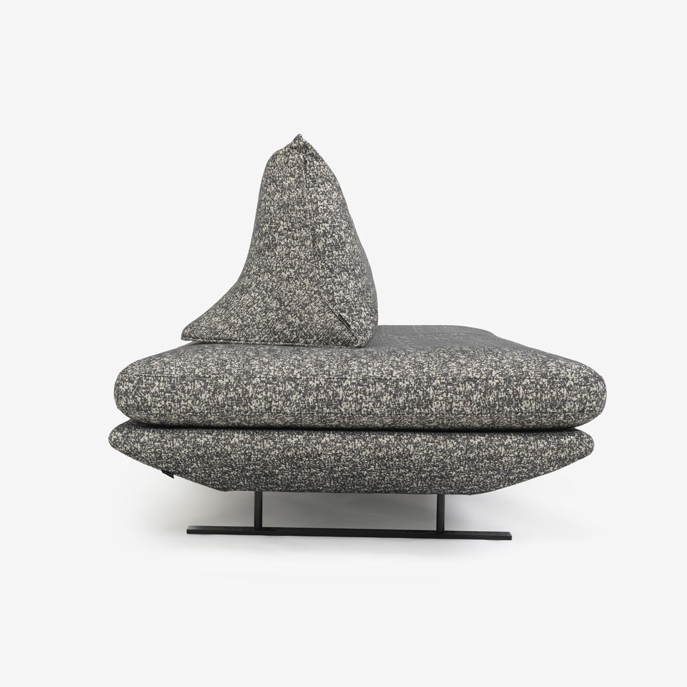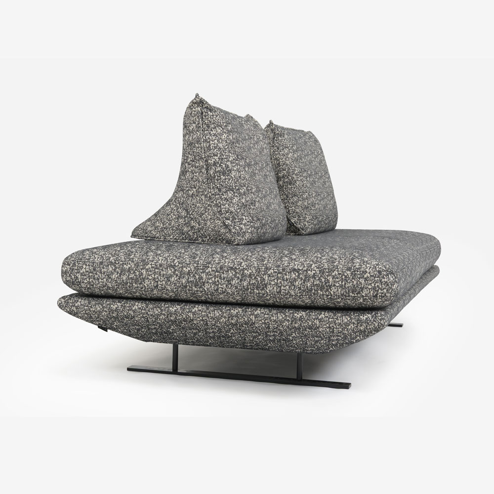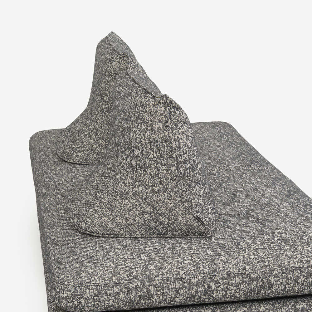 フラットなソファがベースになっており、圧迫感のないデザインです。背クッションとソファ本体はセパレートになっており、自由にレイアウトできます。モノトーンの立体的な織りの表情が美しいファブリック張りです。