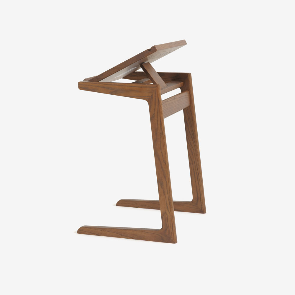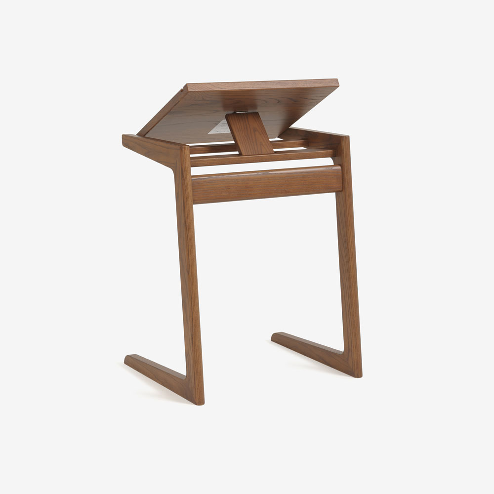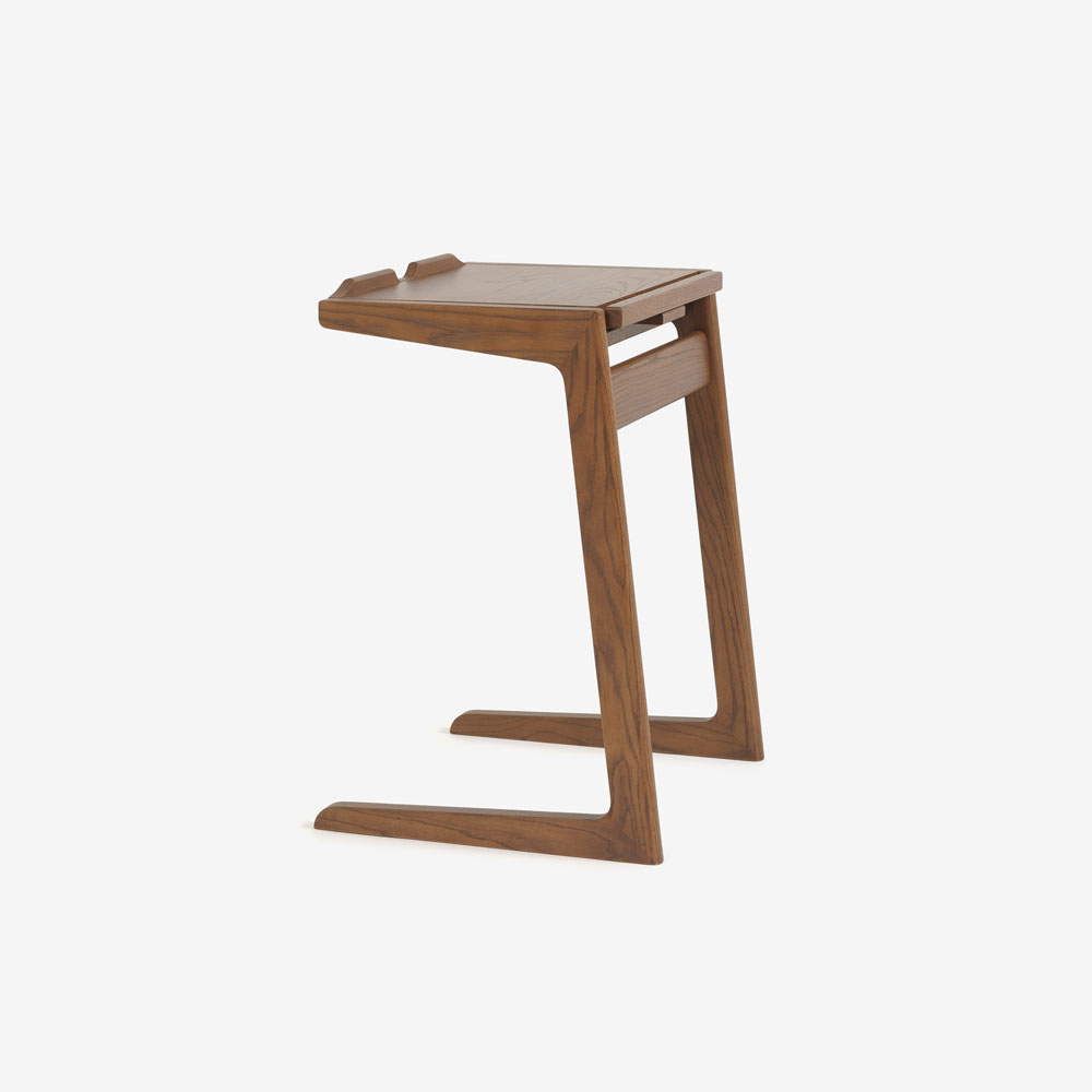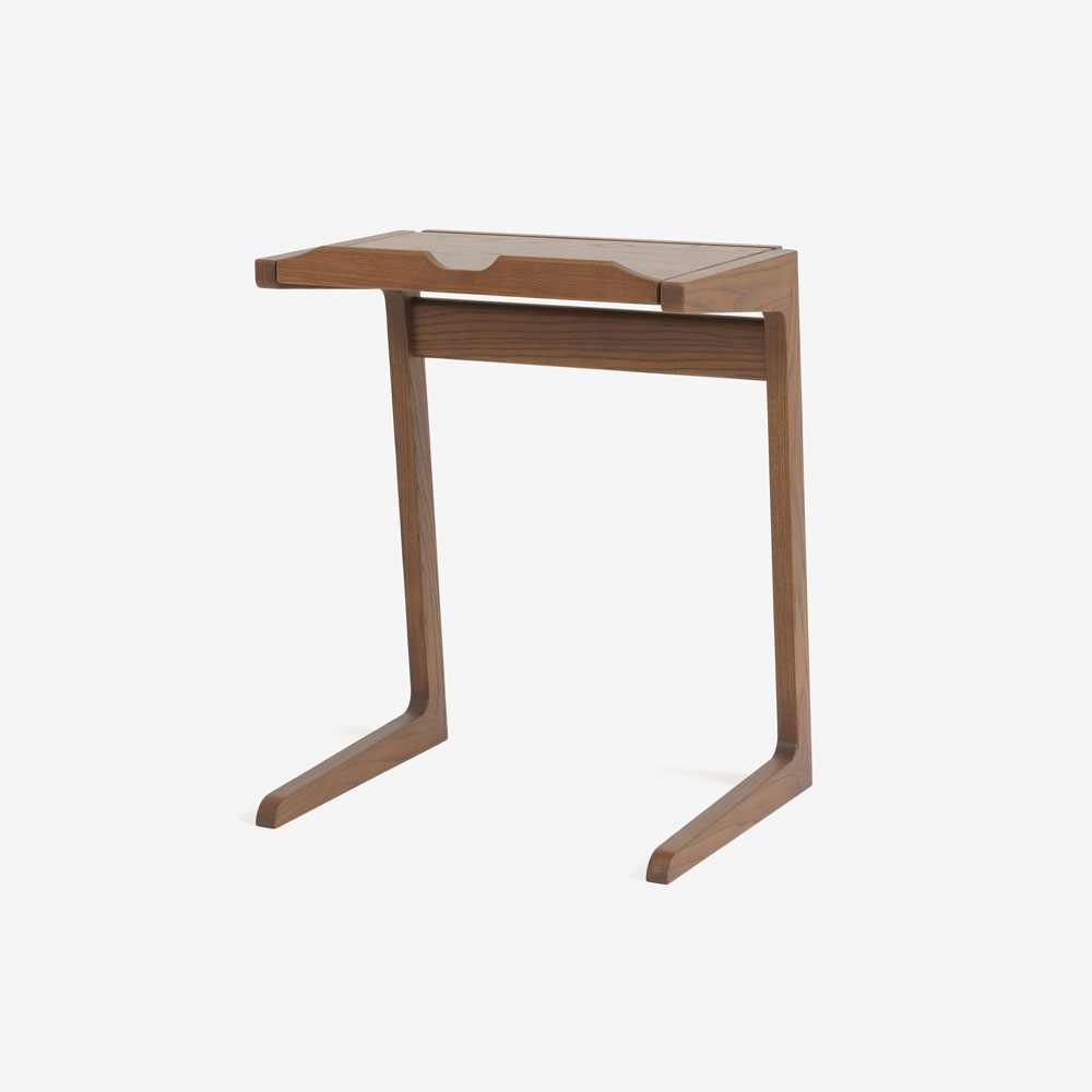 フラットのまま書き物デスクやコーヒーテーブルとしてはもちろん、角度をつけて固定することができるので、ソファにもたれて雑誌を読んだり、ノートパソコンを置いての作業にも適しています。コの字型でソファに引き寄せて使いやすいデザインです。※ソファに差し込んで設置するには、ソファ脚部に5cm以上の高さが必要です。