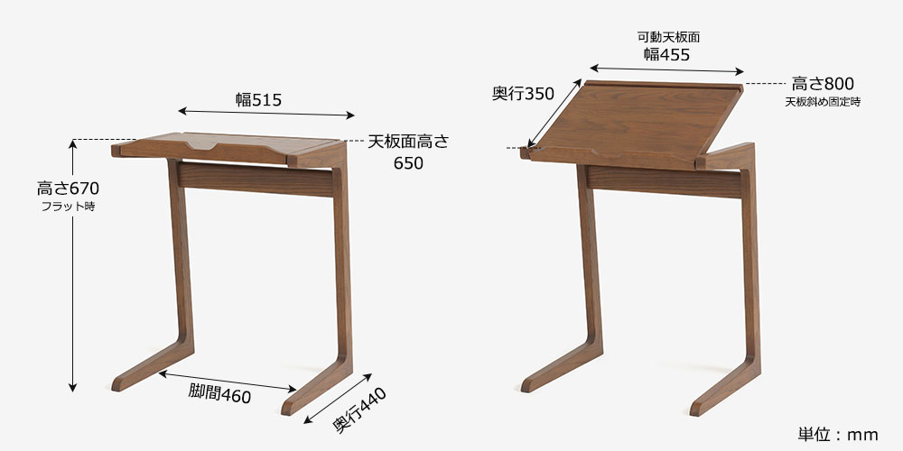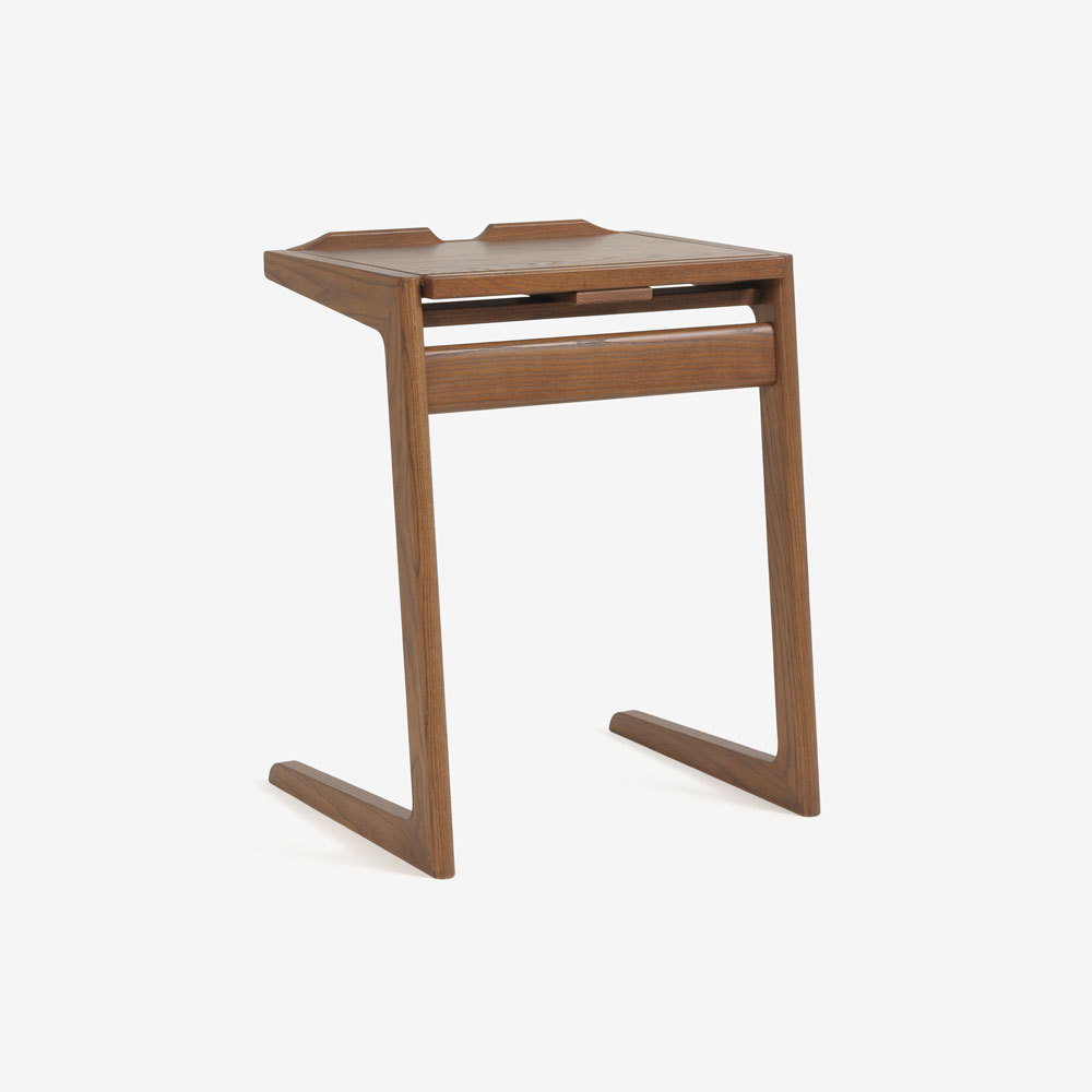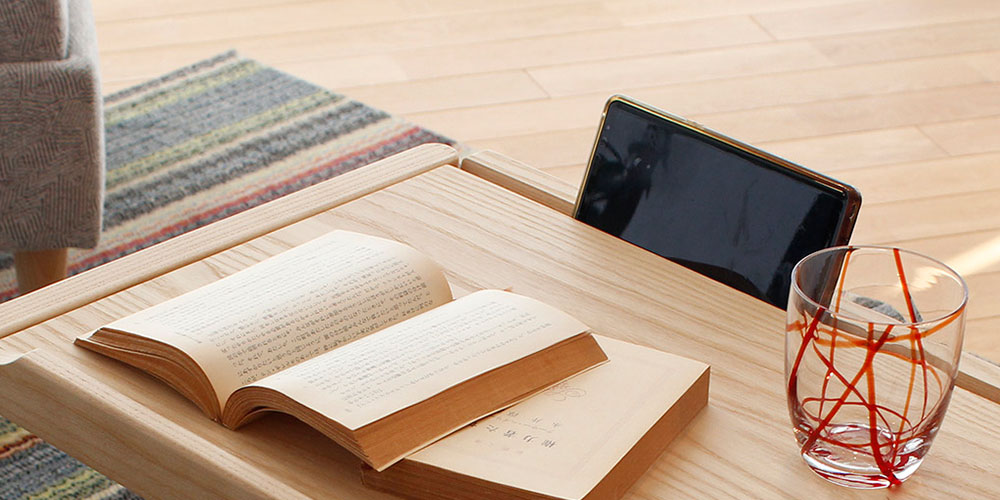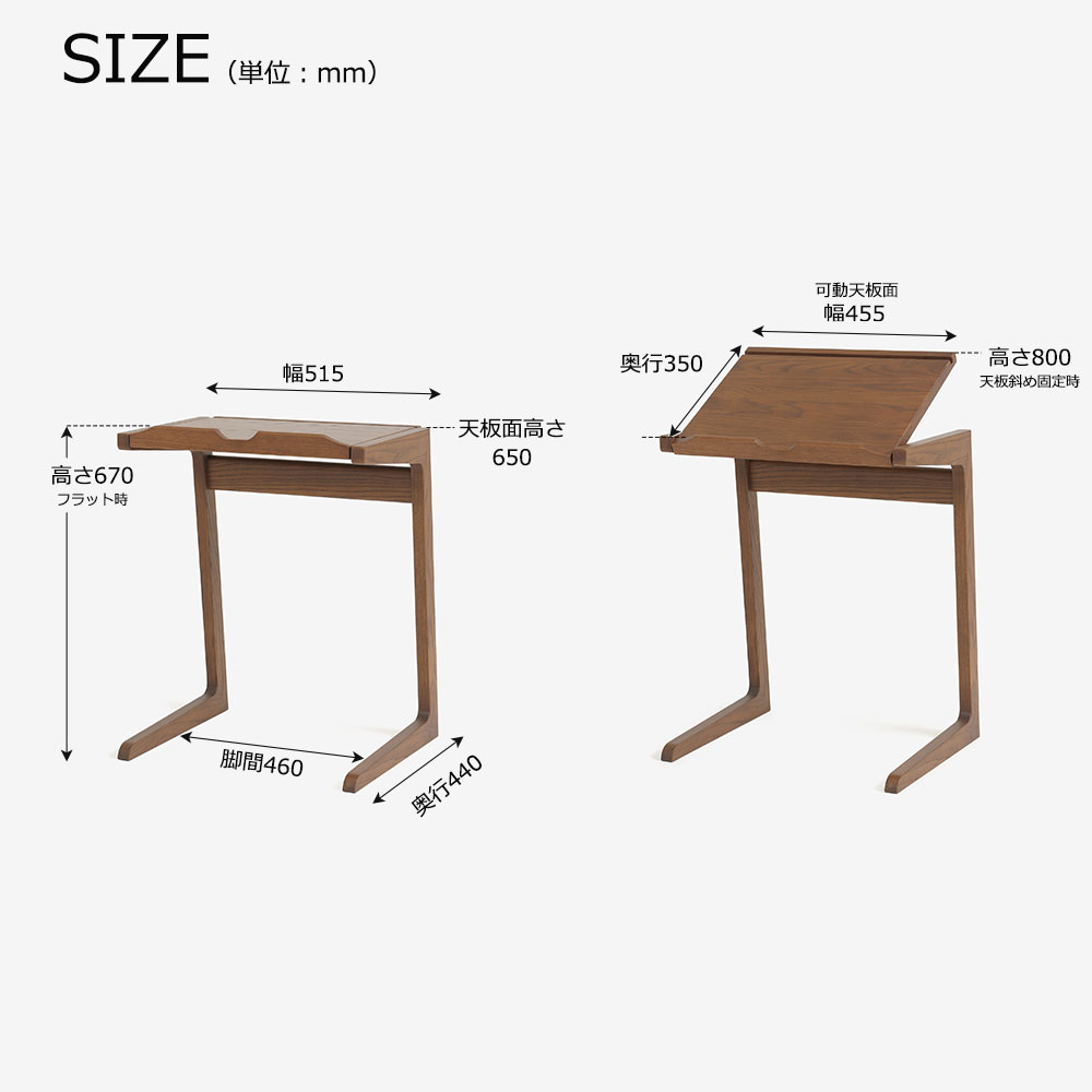 フラットのまま書き物デスクやコーヒーテーブルとしてはもちろん、角度をつけて固定することができるので、ソファにもたれて雑誌を読んだり、ノートパソコンを置いての作業にも適しています。コの字型でソファに引き寄せて使いやすいデザインです。※ソファに差し込んで設置するには、ソファ脚部に5cm以上の高さが必要です。