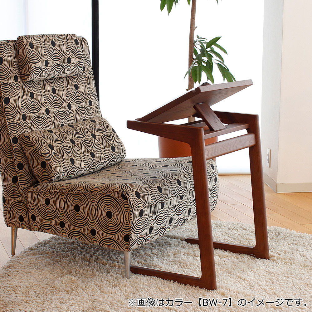 天板の角度が変えられて、読書やテレワーク、タブレットの操作にも便利なPCテーブル「AT-333」です。アッシュ材のナチュラルな素材感がインテリアに馴染み、ソファ周りで使いやすいコンパクトなサイズ感です。※画像はカラー【BW-7】のイメージです。