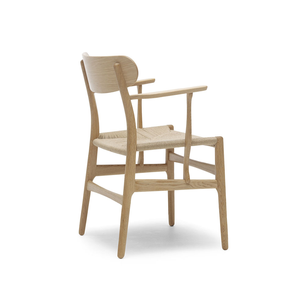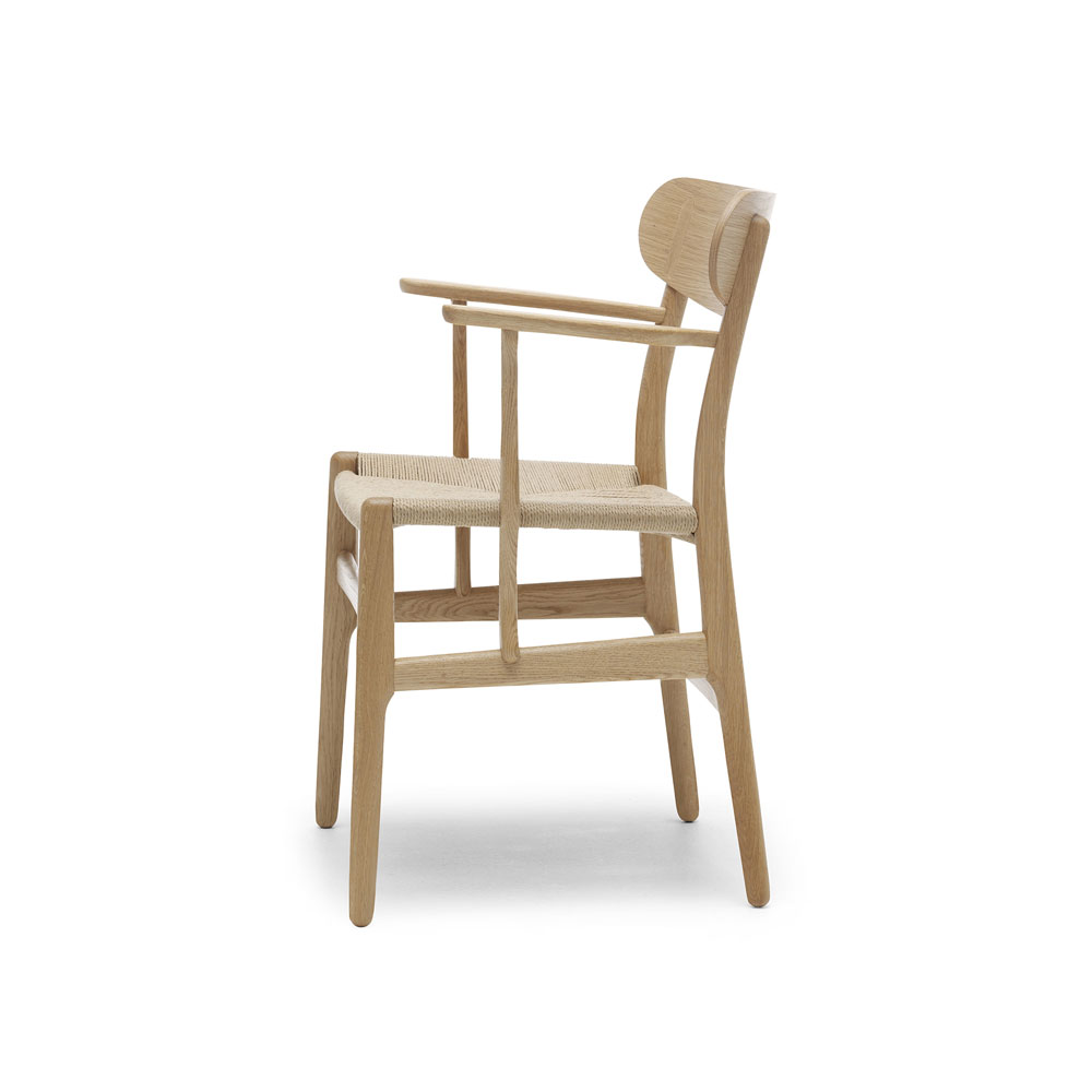 オーガニックなフォルム、印象的な背、白木素材、ペーパーコード張りの座と、CH26はラウンジチェア CH22を彷彿させるダイニングチェアとなっています。ダイニングチェアとして、デスク用の椅子として、長い時間使用するシーンに適した椅子と言えます。