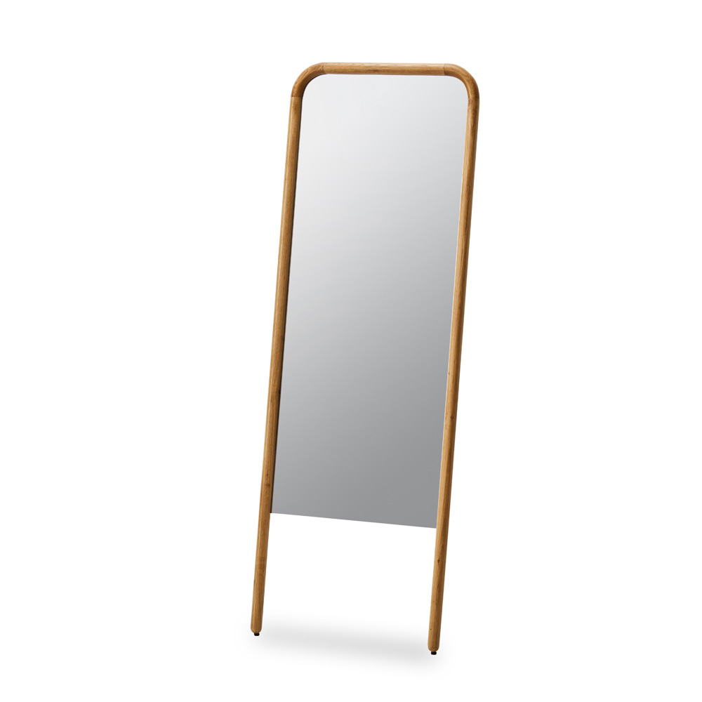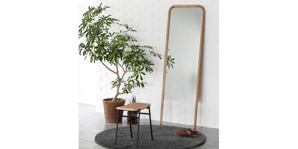 曲線を描いた無垢材フレームでミニマムなデザインのスタンドミラー「スーク」