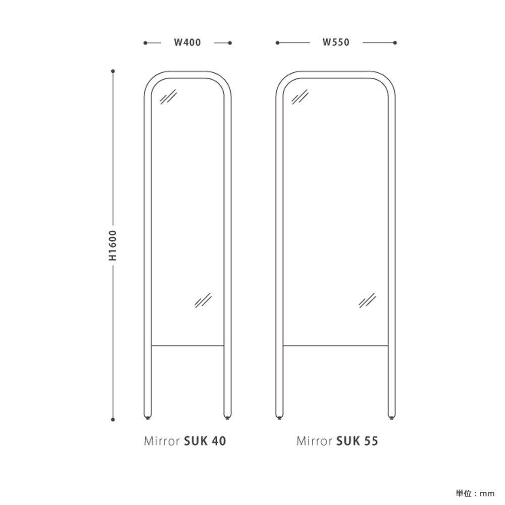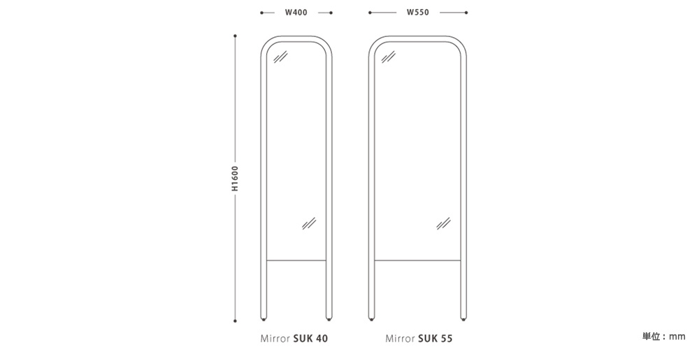 玄関や洗面所など省スペースに使える「幅40cm」と、リビングや寝室などゆとりのある空間に使える「幅55cm」の2サイズ展開です。用途に合わせてお選びいただけます。