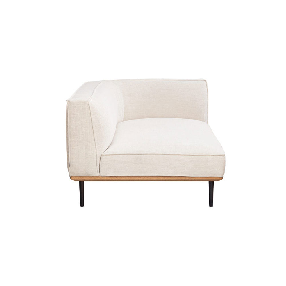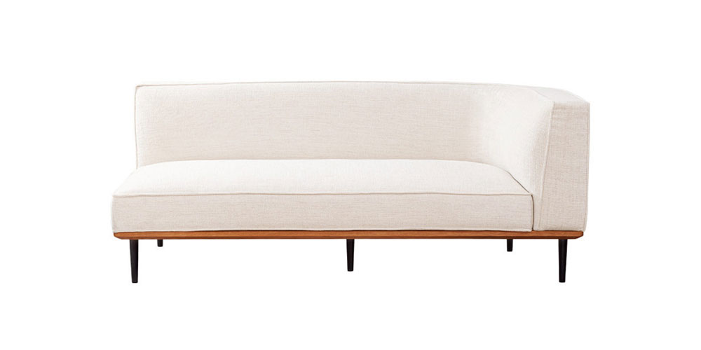 片肘の背もたれやクッションの膨らみなど、全体的に丸みを持たせ、さらに高さを抑えたことで、圧迫感のない優しい印象です。良質なオーク無垢材を使った台輪は、長年の使用に耐えうるしっかりとした厚みがありながら、角部分を面取り加工することで本来の厚みを感じさせないデザインです。