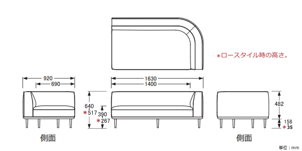 脚部、台輪:オーク材(ロースタイル用の脚は樹脂製)