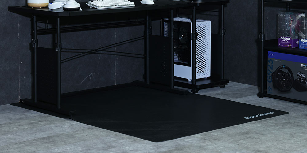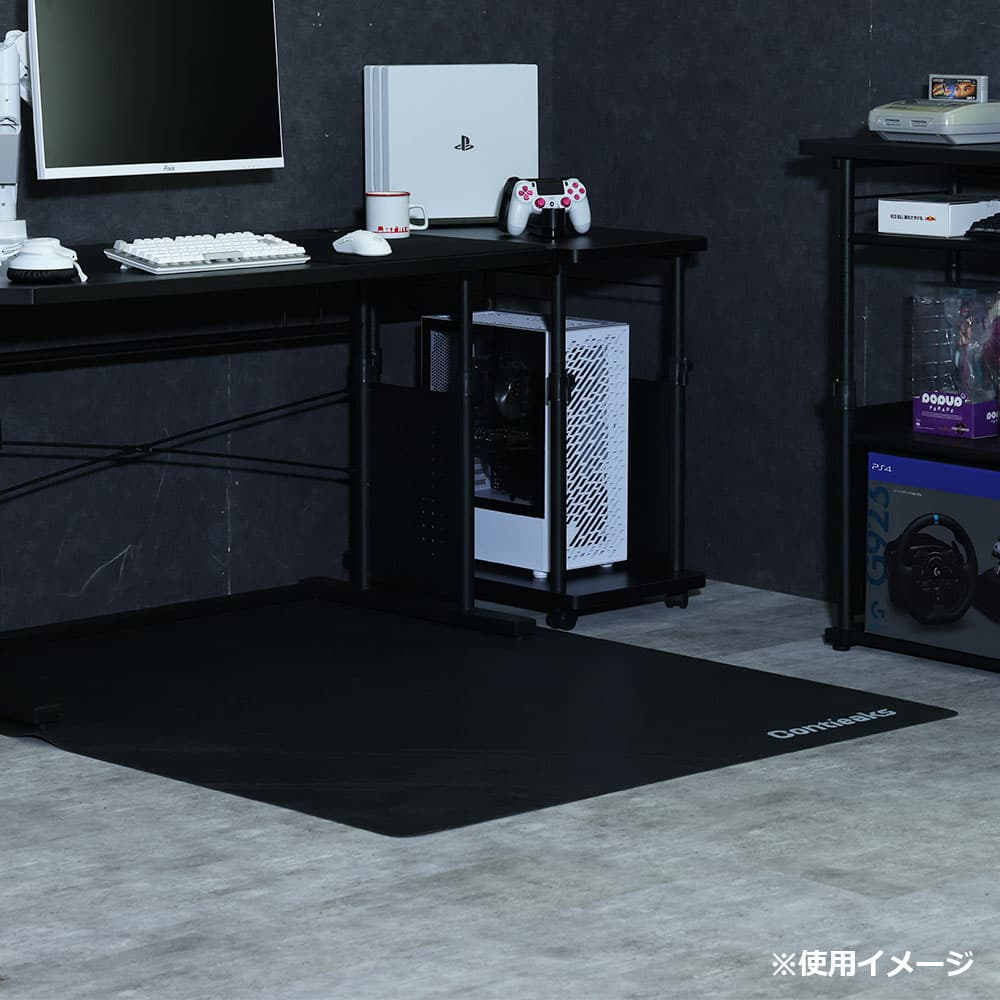 幅120cmデスクの脚部からチェア可動域までカバーできるサイズ。幅140cmデスクの内側の保護もできるのでマルチモニターユーザーにもうれしいサイズです。