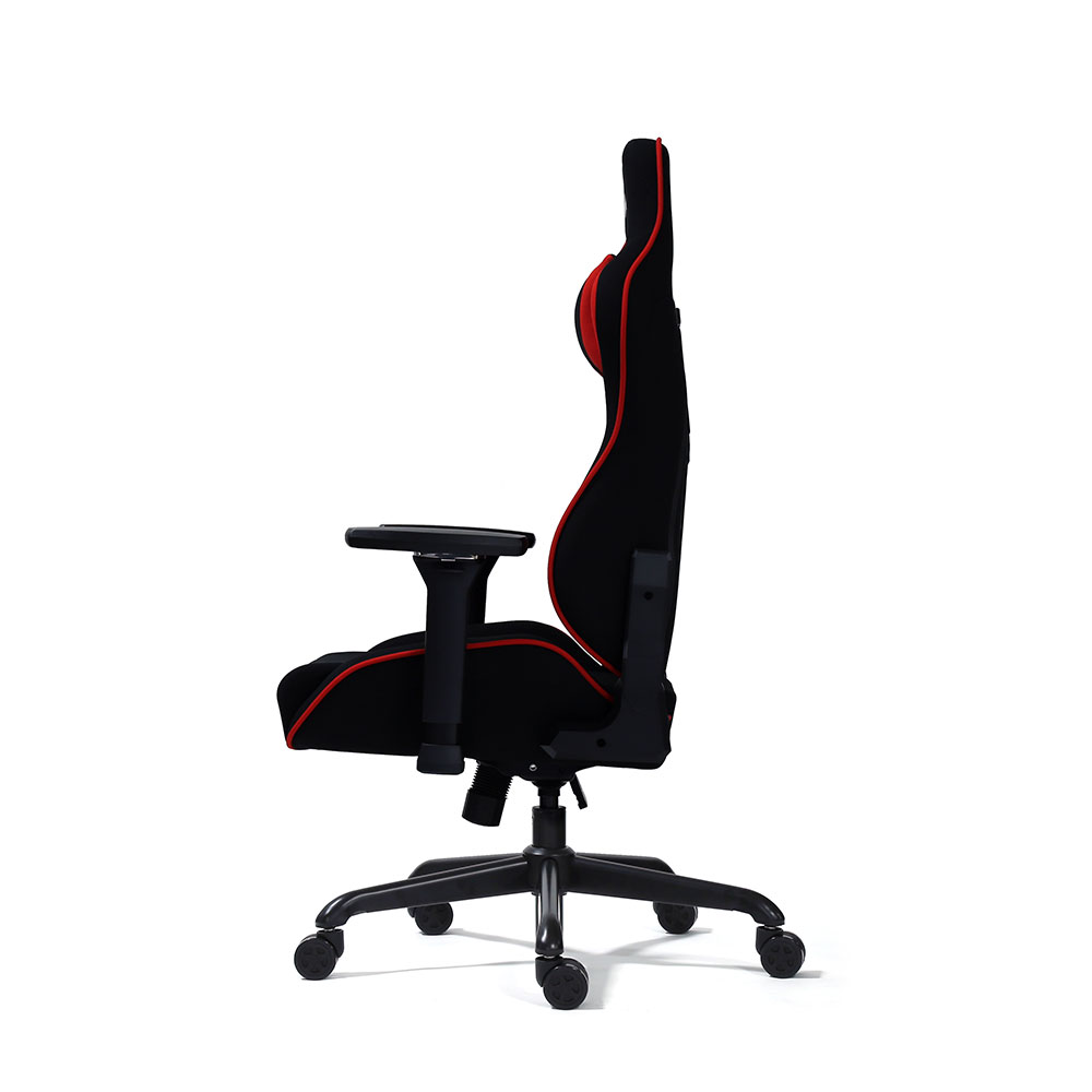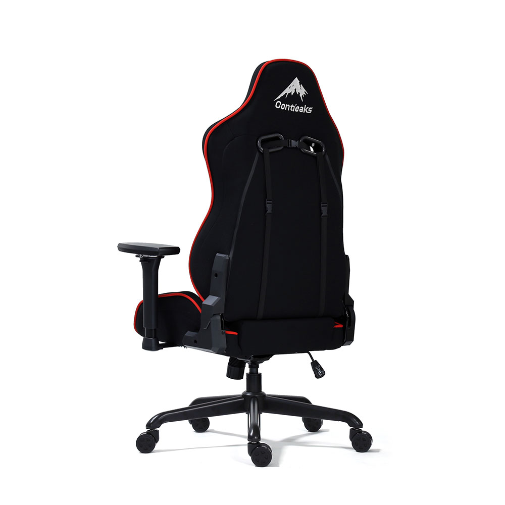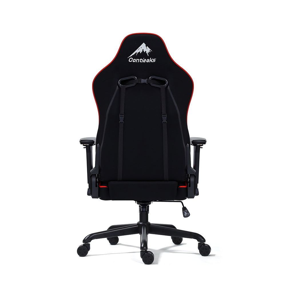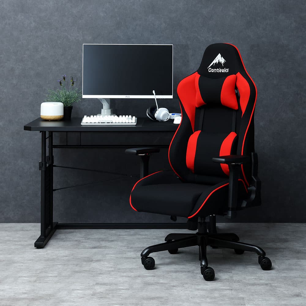 PC使用環境やプレイの様子を分析し、快適な環境を構築できるよう様々な機能を搭載したゲーミングチェアです。ジャージファブリックを使用し、高い通気性とフィット感を実現しています。ゴムベルトで高さ調節可能なランバーサポートクッション付きで長時間の作業で腰がつらくなるのを緩和し、サポートしてくれます。