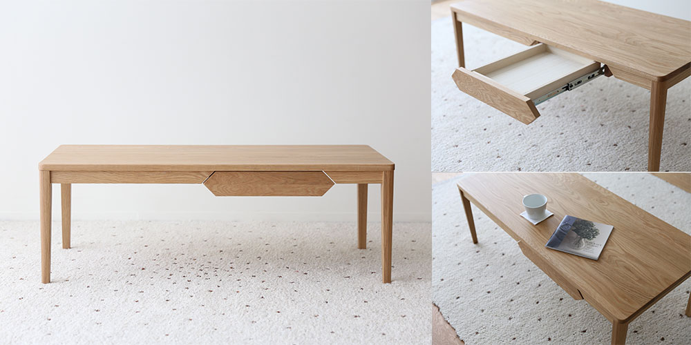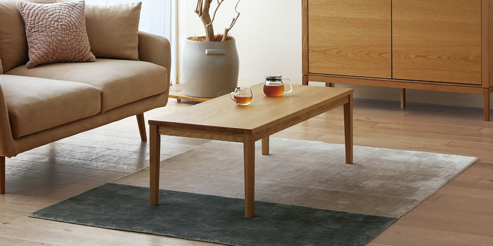 素材の良さを活かした天然木100%のリビングテーブル「PLAIN」