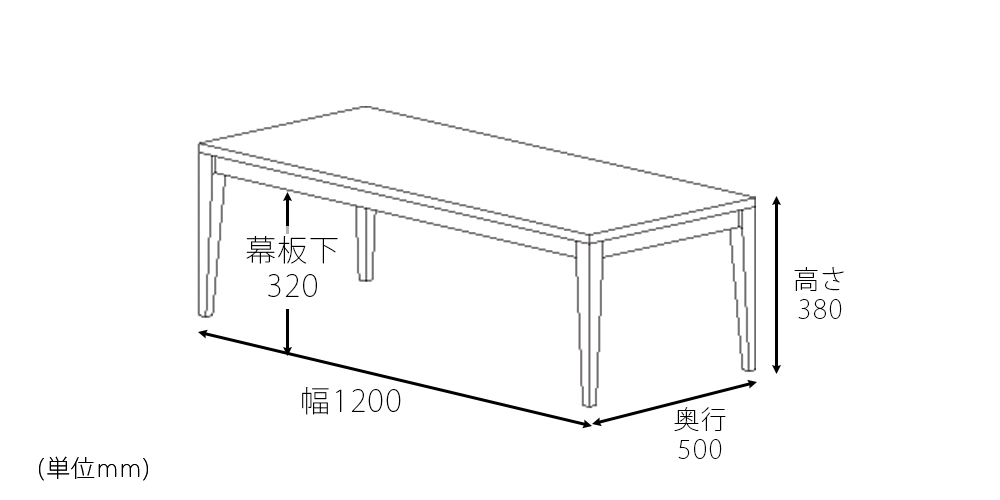 | 引出しなしタイプ(奥行500) | 幅1200×奥行500×高さ380 |